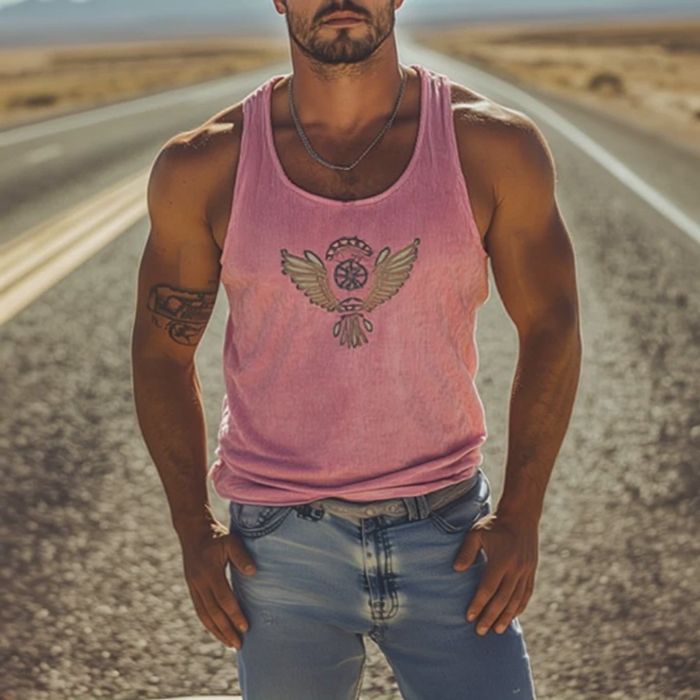 Men's Western Cowboy Style Embroidered Sleeveless Shirt MTA2997E3U