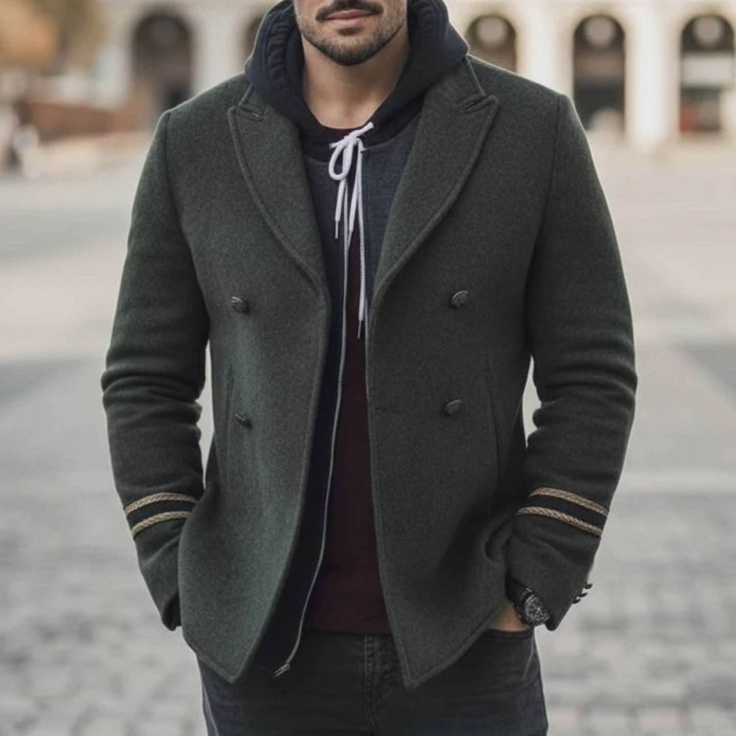 Men's Classic Army Green Double-breasted Short Coat MTA2423I6U