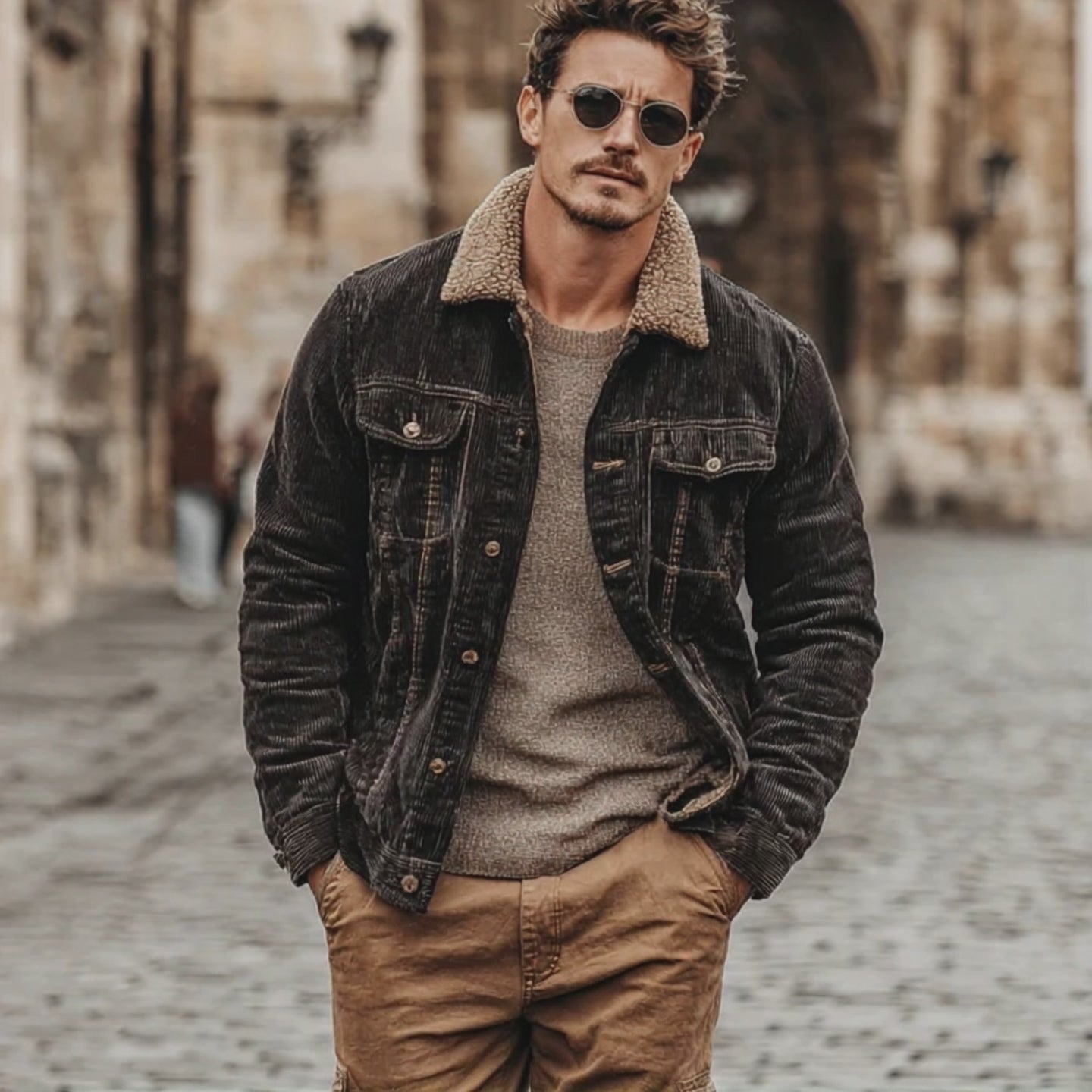 Men's Classic Loose-fit Corduroy Button-up Jacket MTA2589I4U