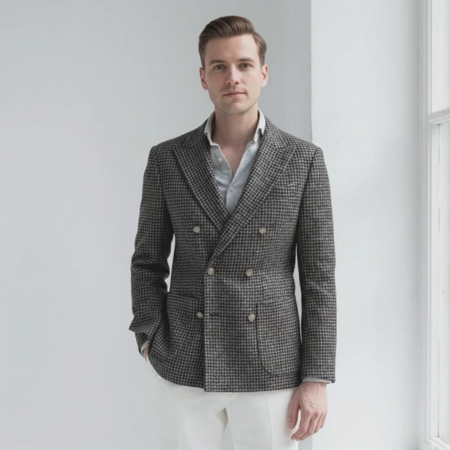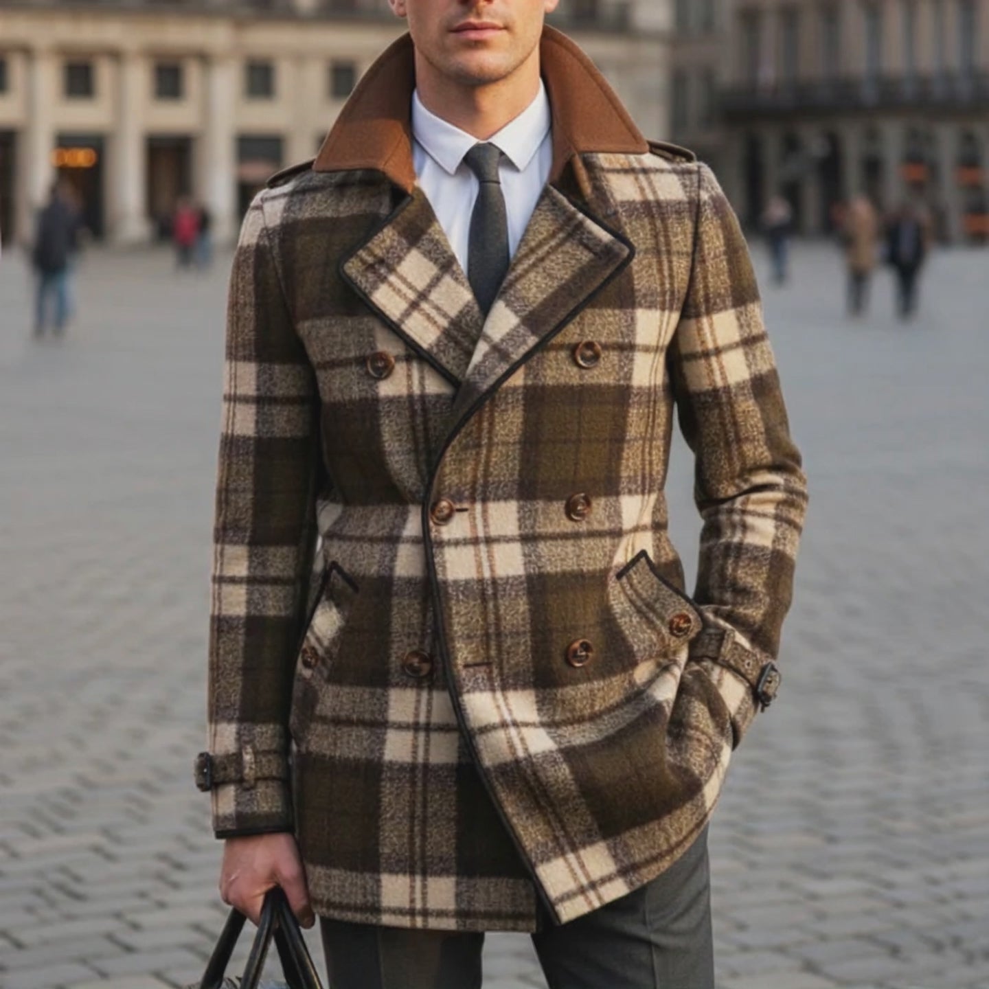 Men's Classic Plaid Double Breasted Notch Lapel Jacket MTA2568I2U