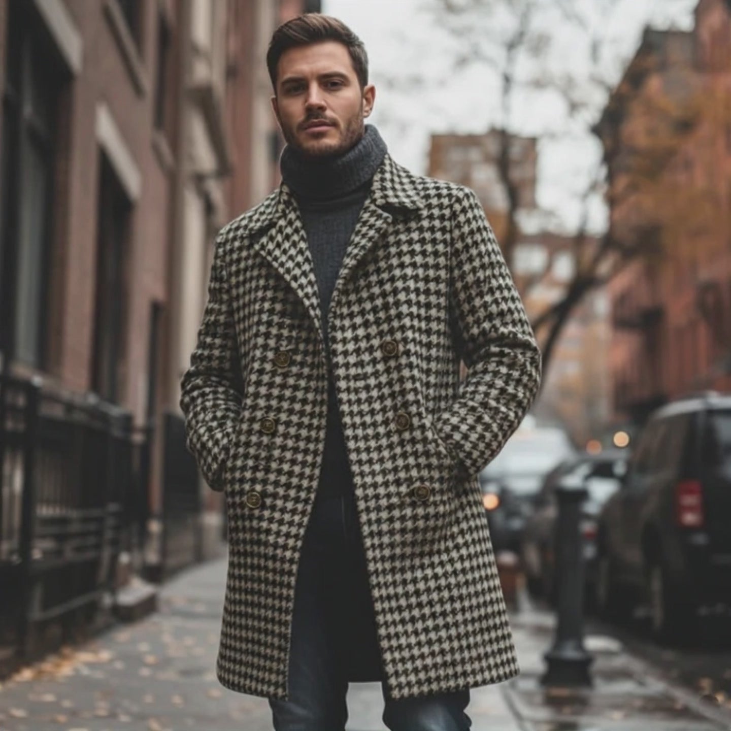 Men's Houndstooth Jacquard Lapel Multi-Pocket Jacket MTA2417I0X