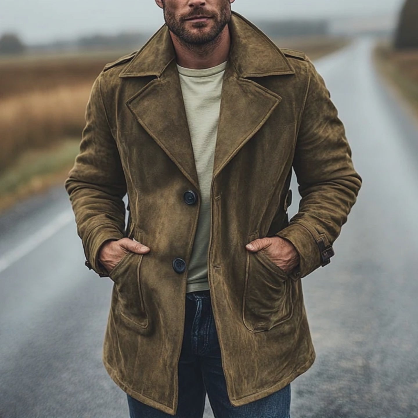 Men's Retro Solid Color Lapel Single-breasted Mid-length Coat MTA2370I7X