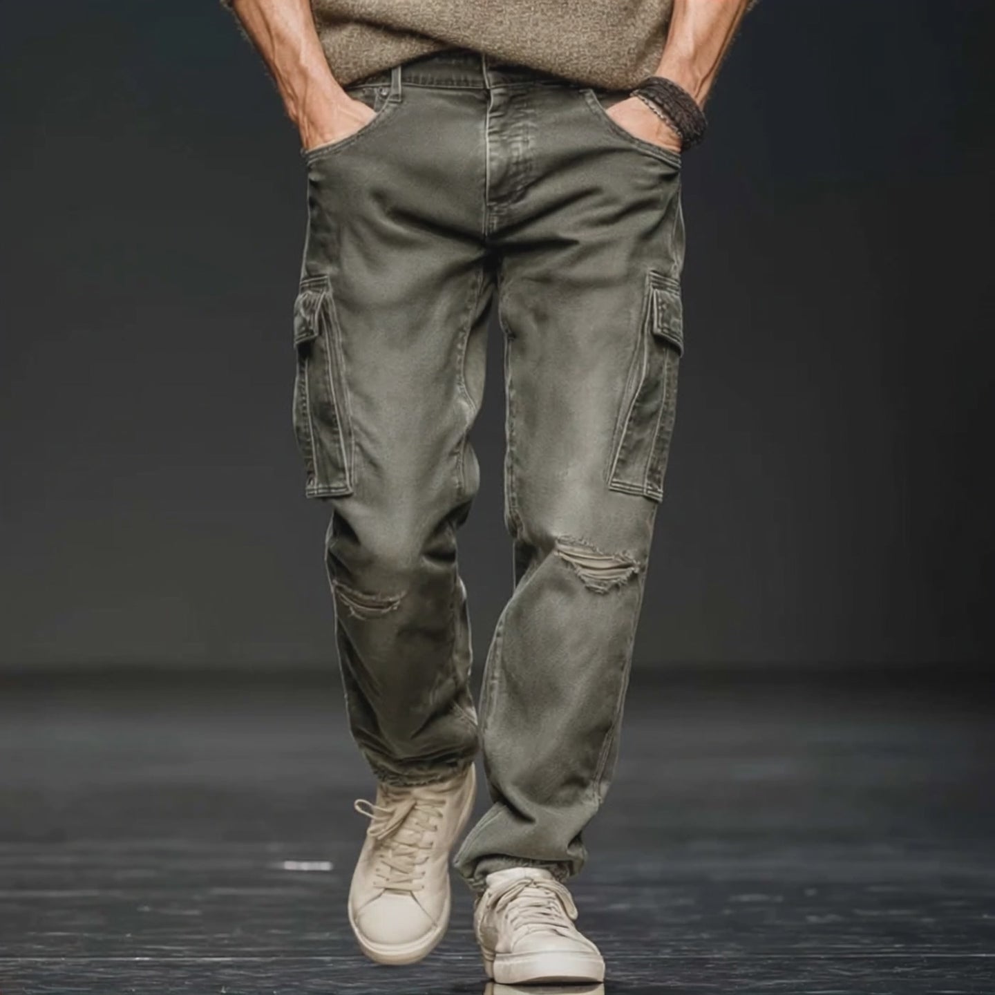 Men's Vintage Multi-pocket Straight-Leg Loose Cotton Cargo Trousers 31031389M