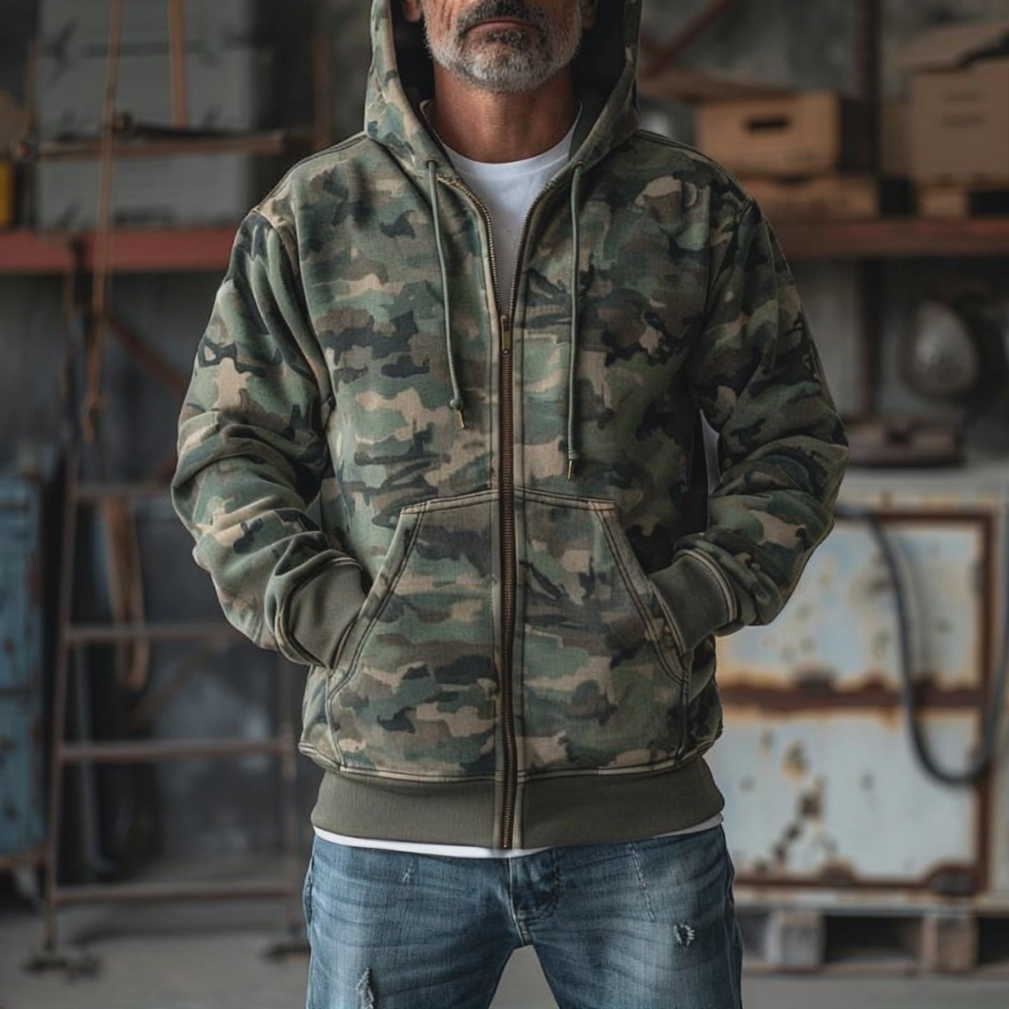 Men's Camouflage Print Hooded Sweatshirt Jacket 73821512Y