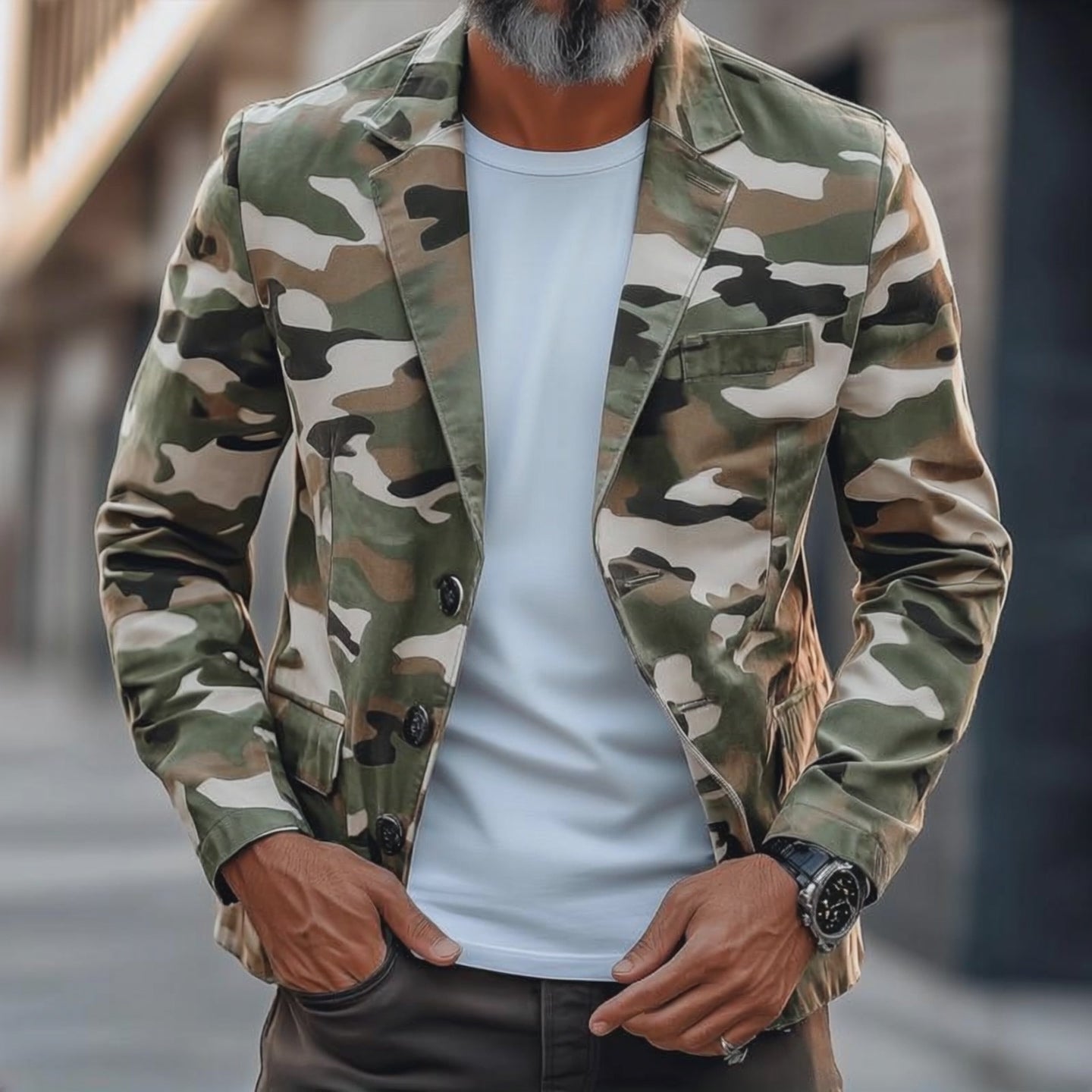 Men's Retro Camouflage Notch Lapel Single Breasted Casual Blazer 84824708Z