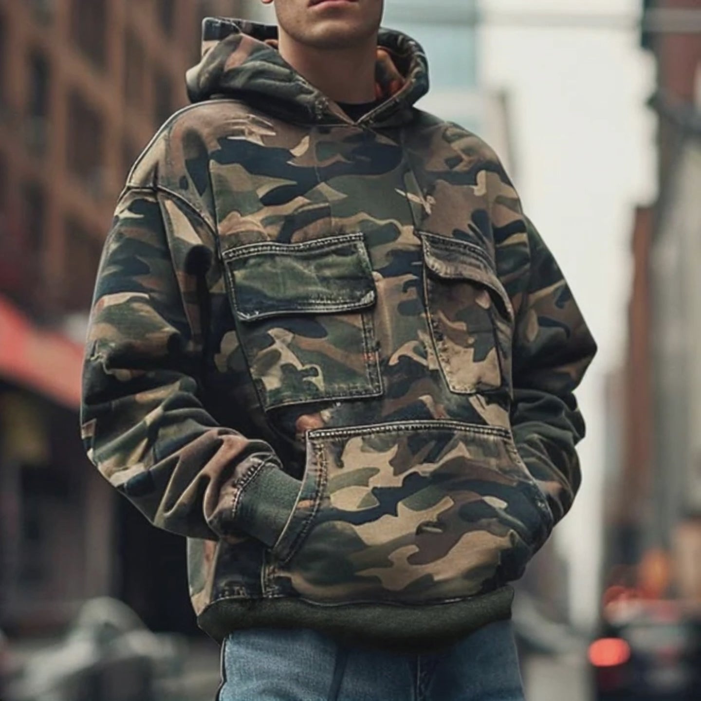 Men's Outdoor Multi-Pocket Camo Pullover Hoodie 08280113X
