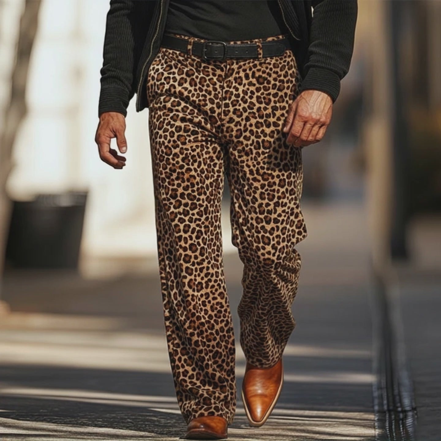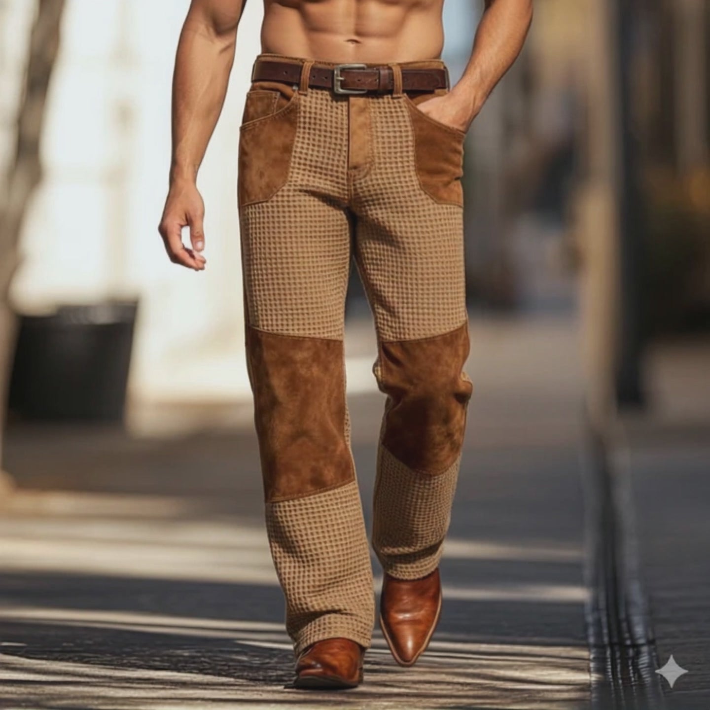 Men's Vintage Multi-Pocket Slim Fit Faux Leather Pants (Belt Excluded) 04018447M