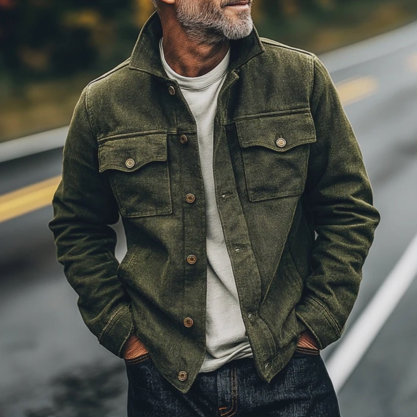 Men's Washed Cotton Lapel Multi-pocket Work Jacket MTA1115K8X