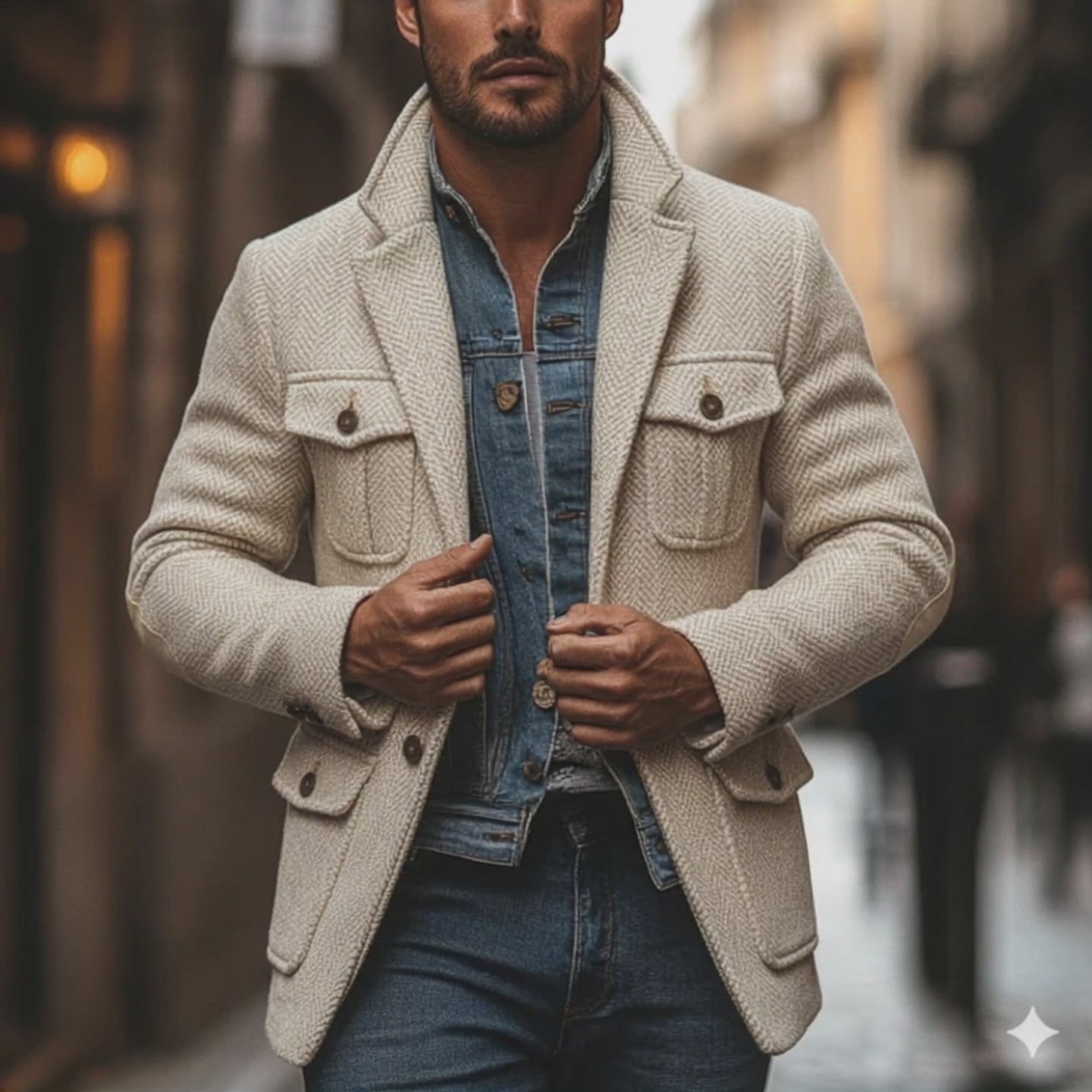 Men's Blended Herringbone Textured Lapel Jacket MTA2988I2X