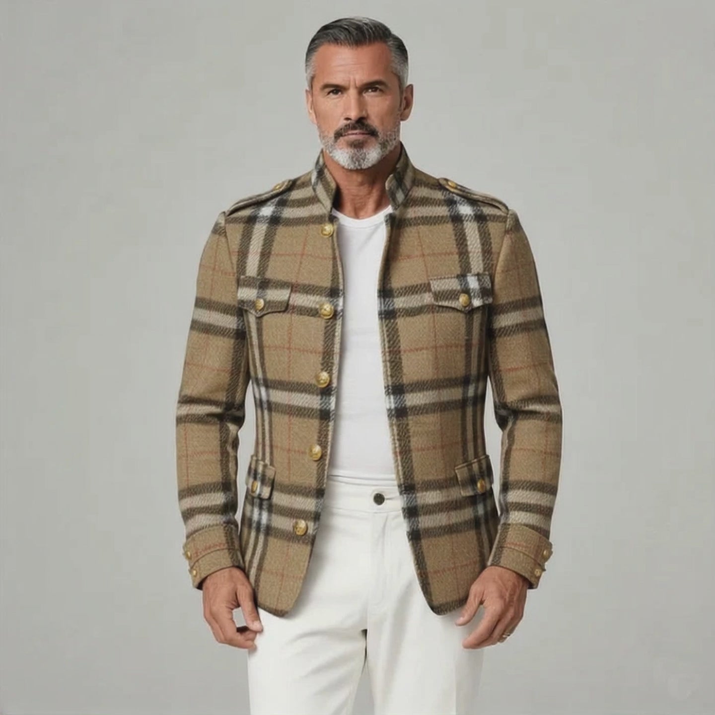 Men's Casual Lapel Multi-pocket Blend Plaid Jacket MTA3033I5X