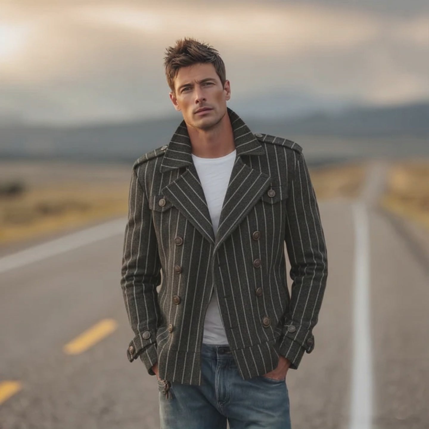 Men's Blended Striped Lapel Multi-pocket Jacket MTA2963I4X