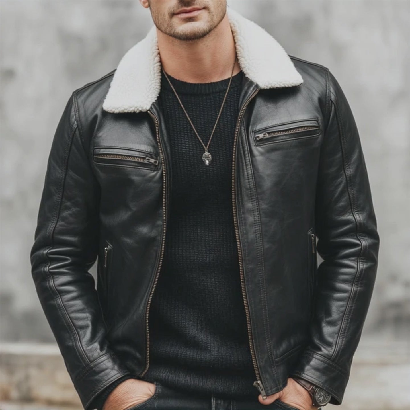 Men's Urban Warm PU Leather Faux Lambswool Lined Jacket MTA1848K5U