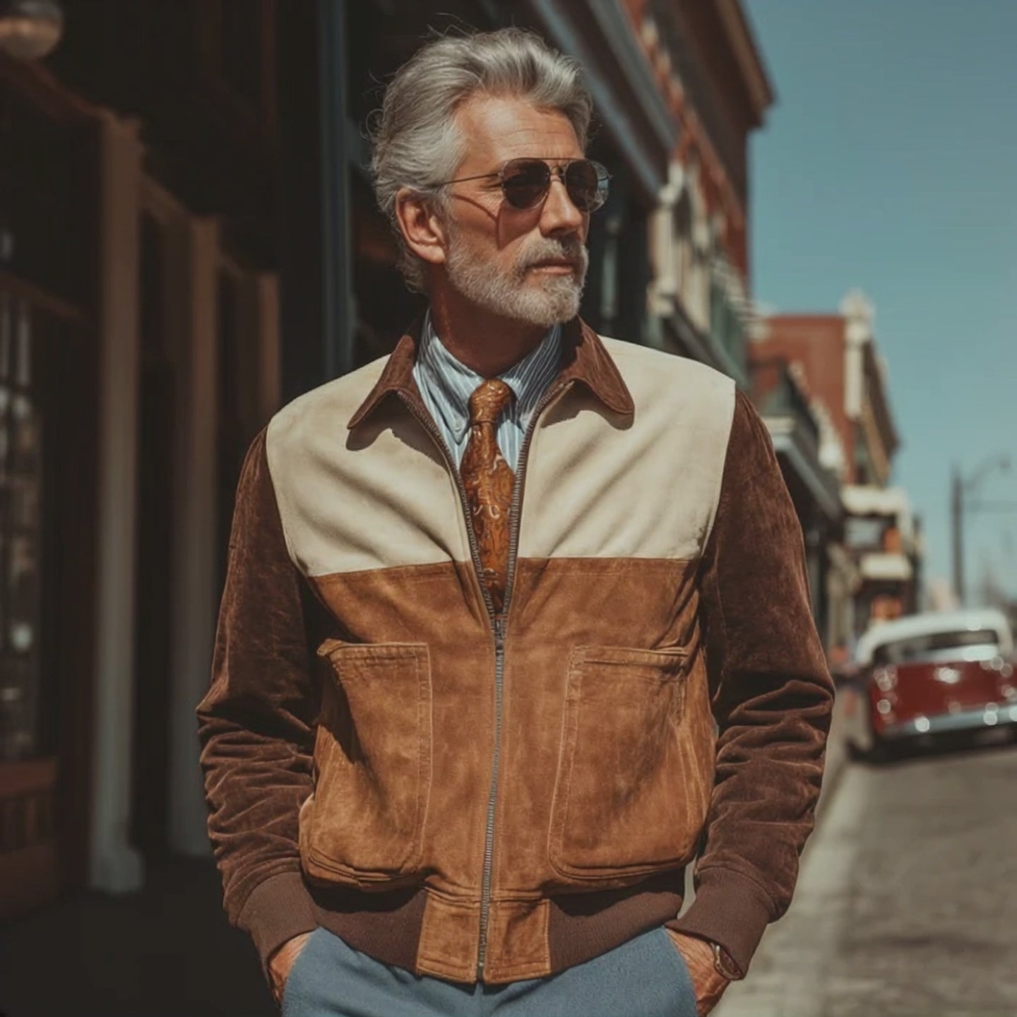 Men's Retro Casual Plush Colorblock Zipper Lapel Jacket MTA2493J2TO