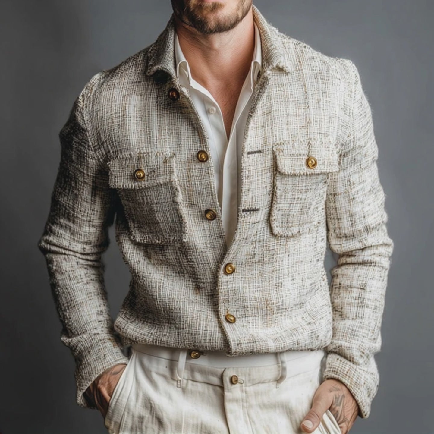 Men's Vintage Casual Tweed Lapel Pocket Button Shirt Jacket MTA2400J4TO