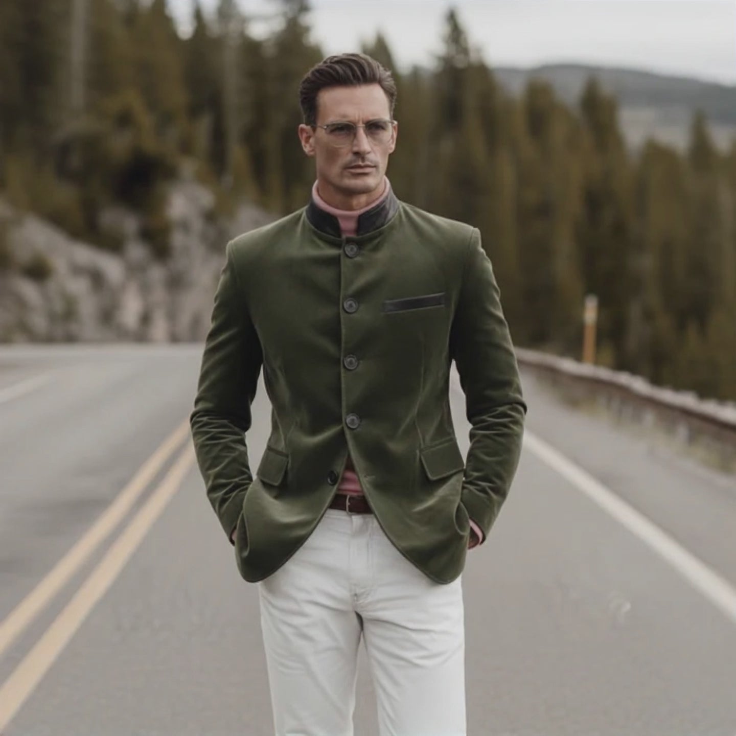 Men's Classic Stand Collar Double Slit Button Jacket MTA2348J2U