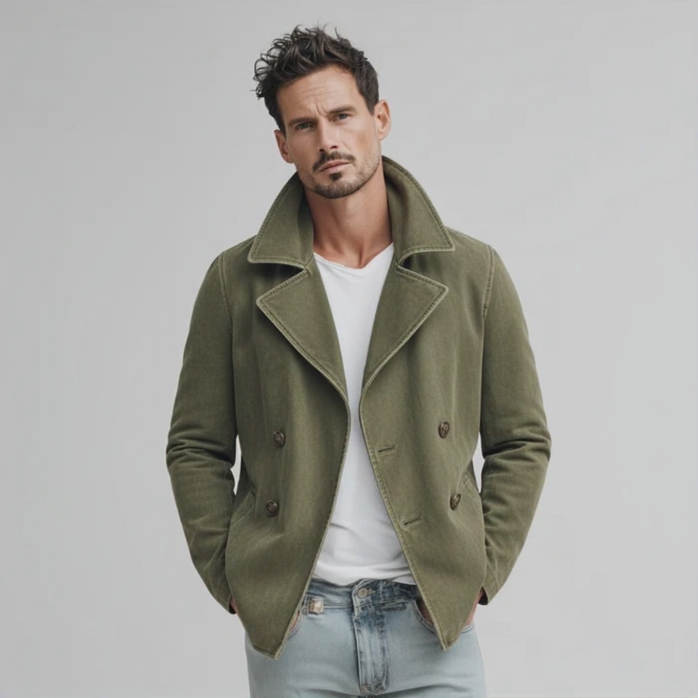 Men's Blended Solid Color Lapel Double-breasted Jacket MTA2466J1X