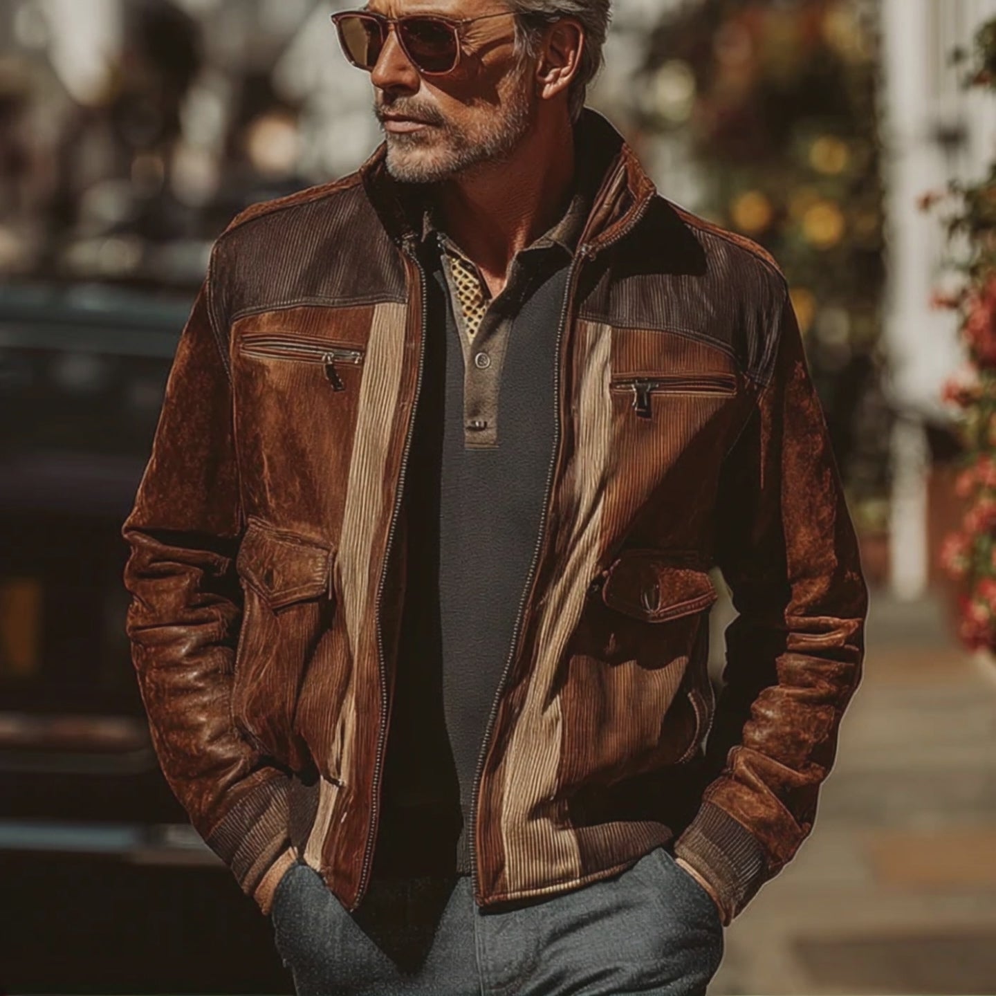Men's Vintage Suede And PU Leather Stand Collar Jacket MTA2341J5U