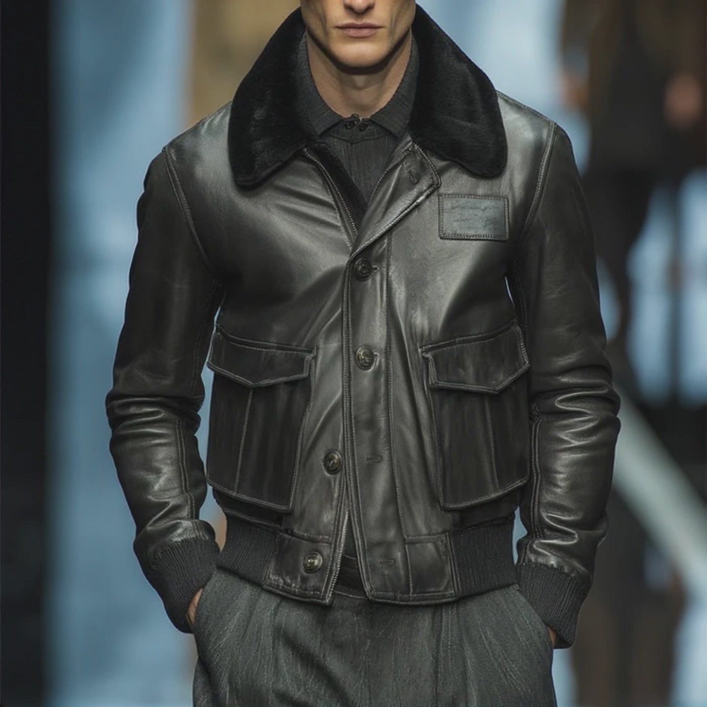 Men's Retro Casual Fur Collar Button Zipper Leather Jacket MTA0125I9TO