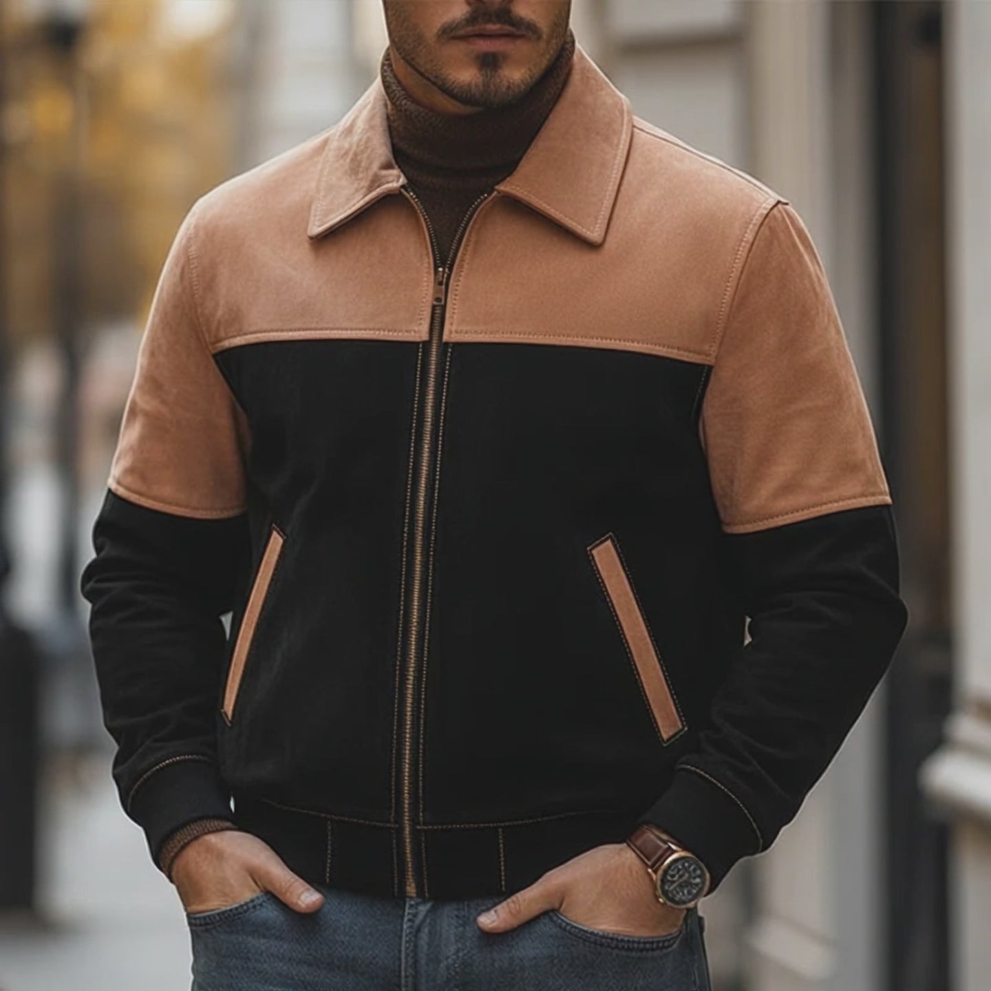 Men's Vintage Color-block Faux Suede Zip-up Jacket MTA2373L9P