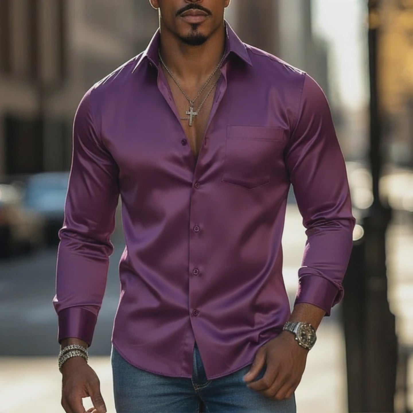 Men's Spring Fashion Satin-like Long-sleeved Shirt MTZ0880A5P
