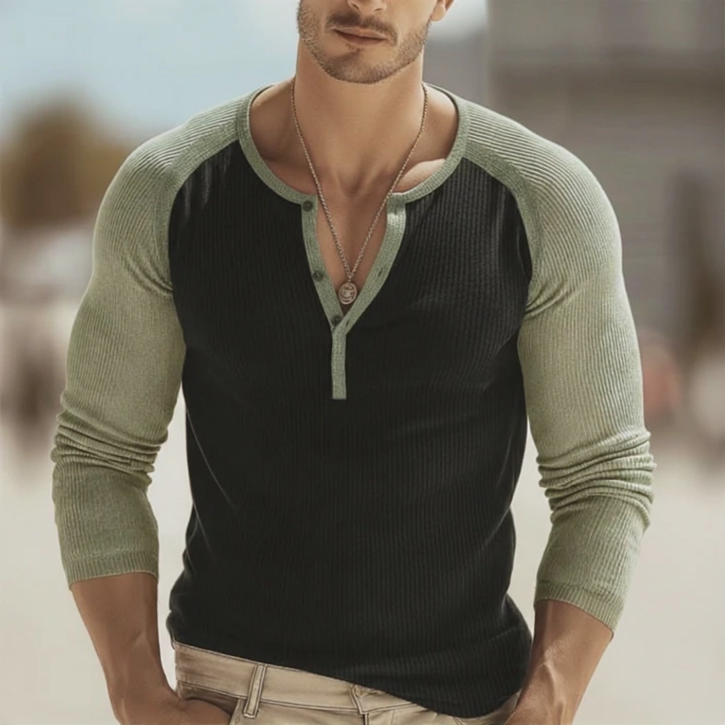 Men's Vintage Casual Henley Collar Long Sleeve T-Shirt MTZ2902A3TO