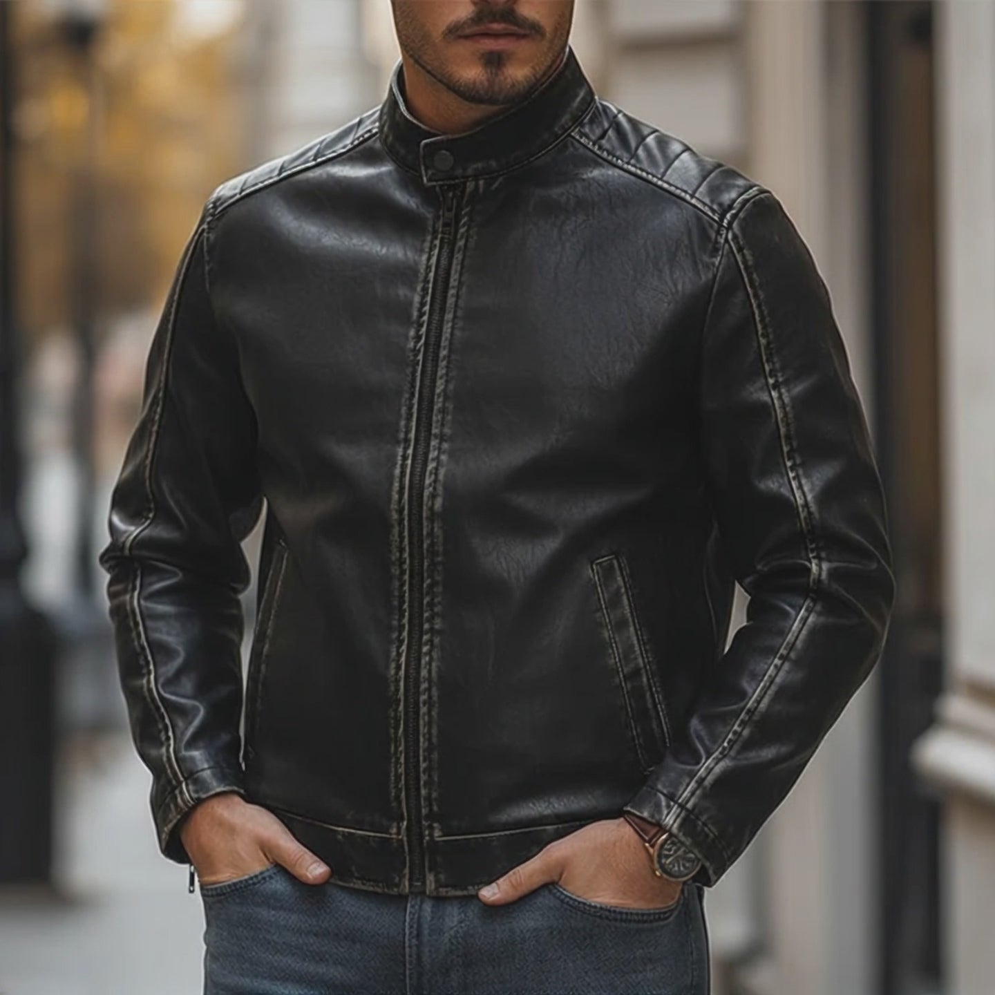 Men's Vintage Distressed PU Faux Leather Zip-up Jacket MTA2378L0P