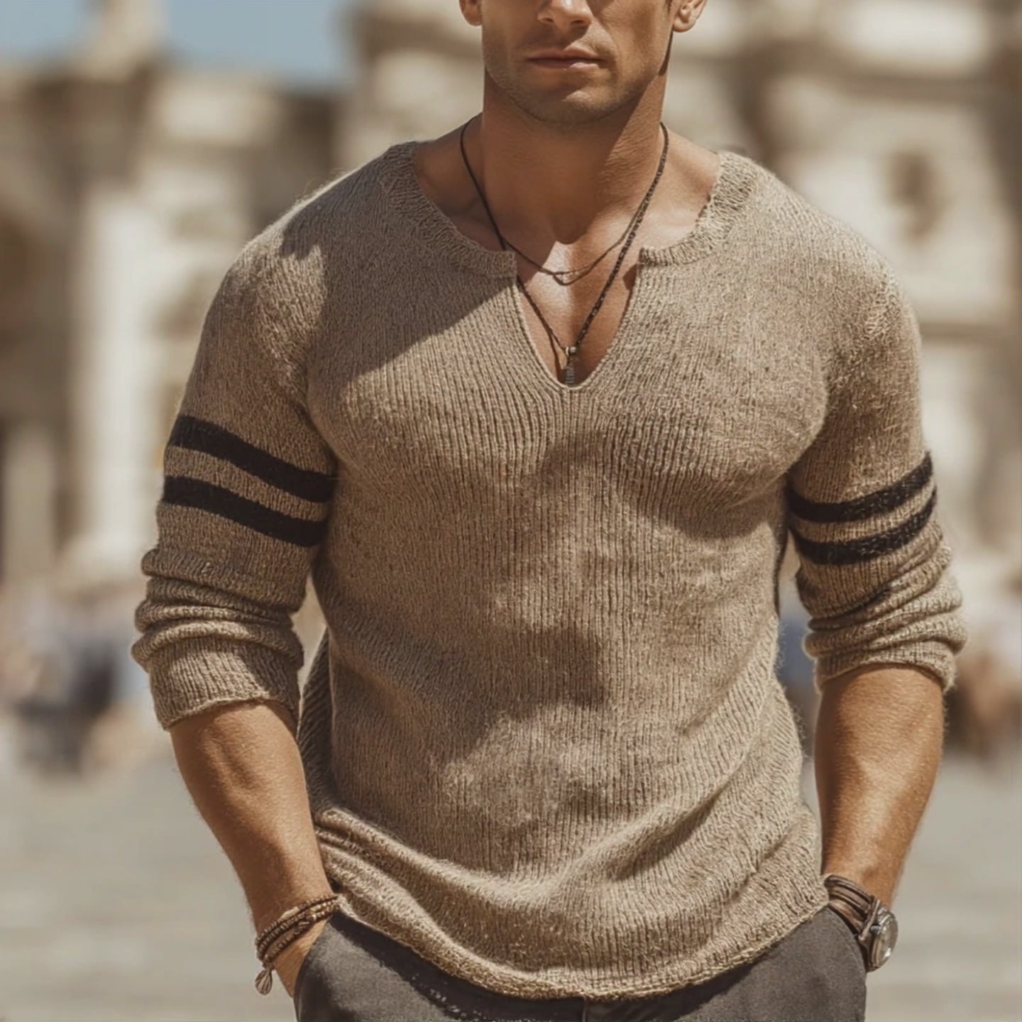 Men's Urban Fashion Khaki V-neck Knitted Sweater MTA2444L0U