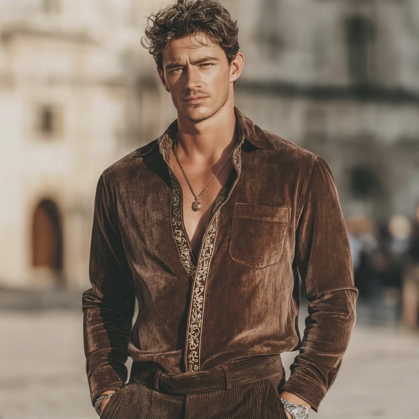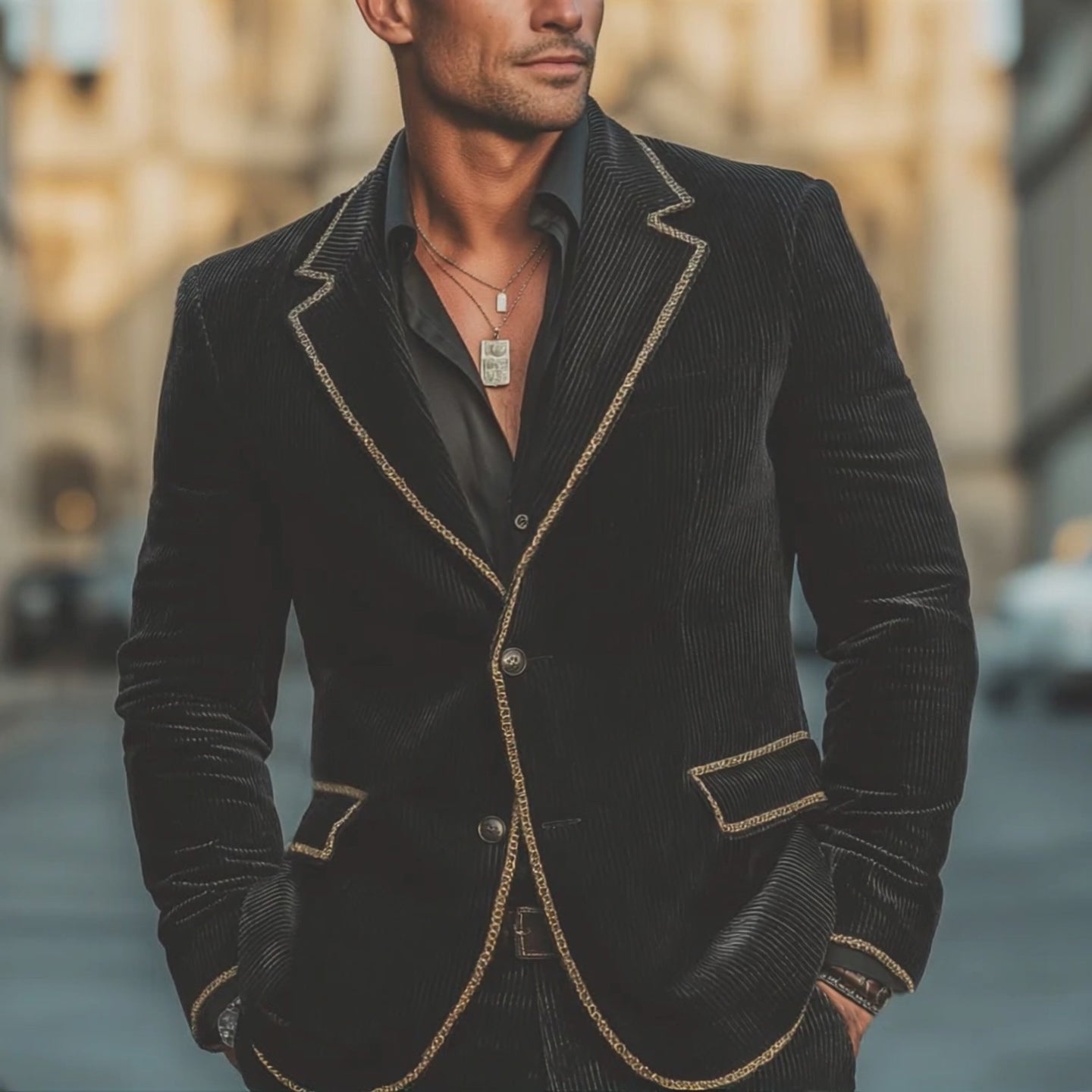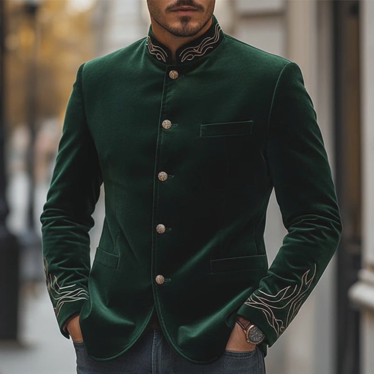 Men's Vintage Velvet Stand-Collar Multi-Button Embroidered Slim-Fit Jacket MTA1188K3U