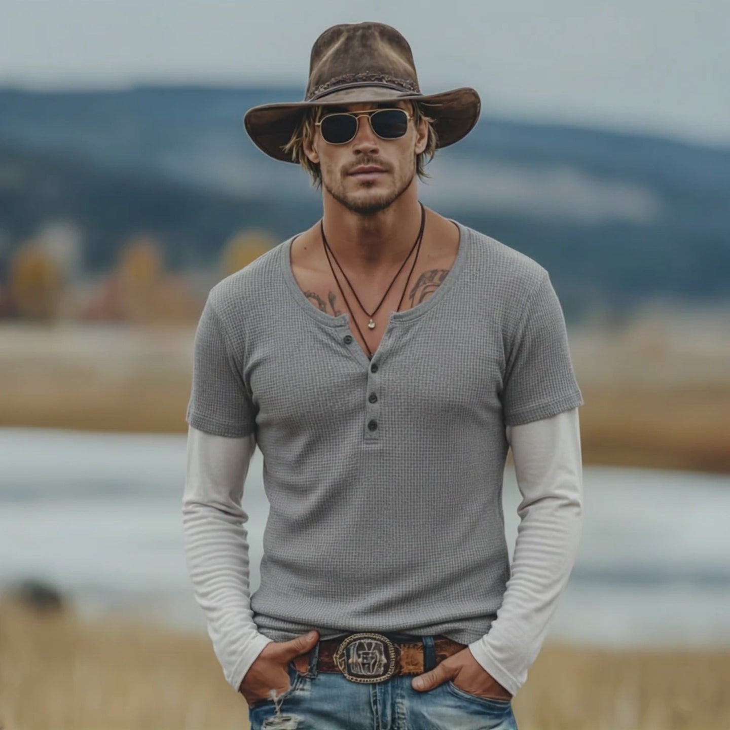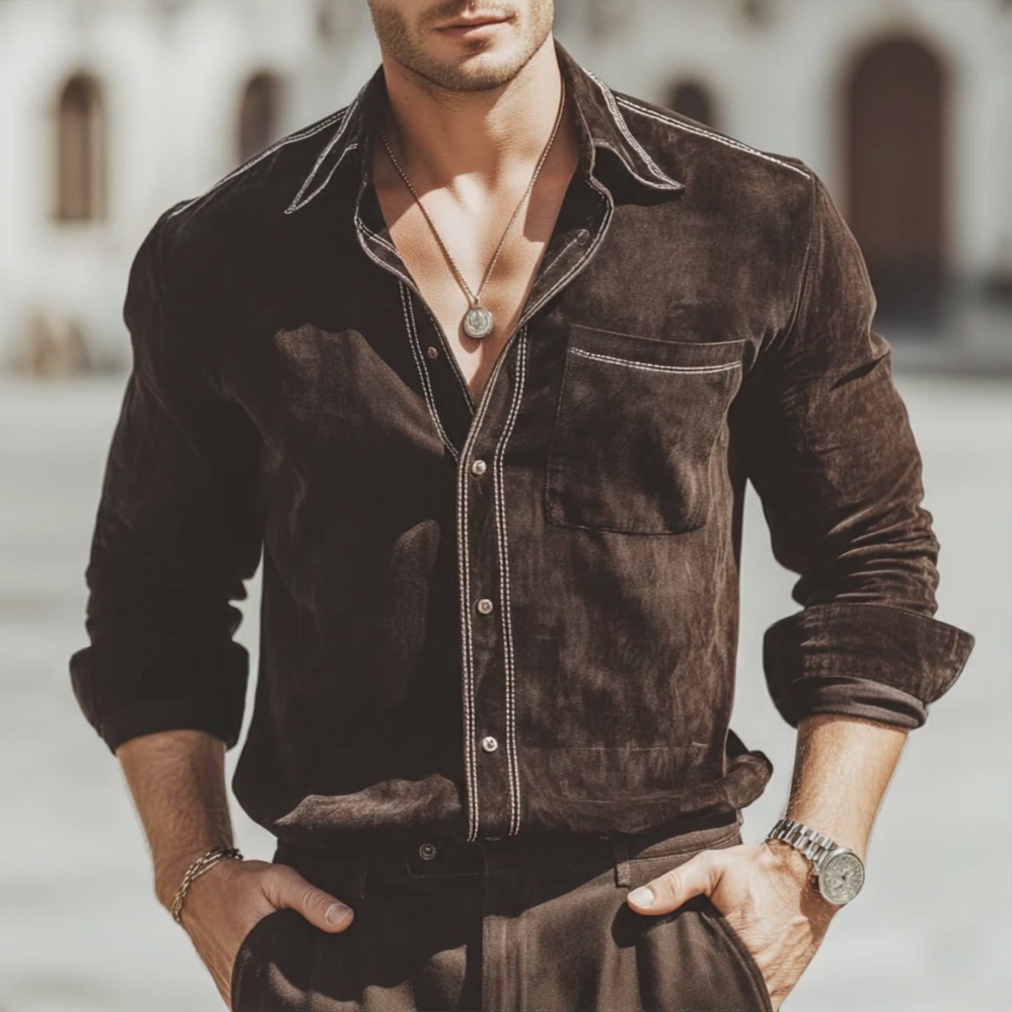 Men's Retro Casual Cotton LapelLong-Sleeve T-Shirt MTA2328L9TO