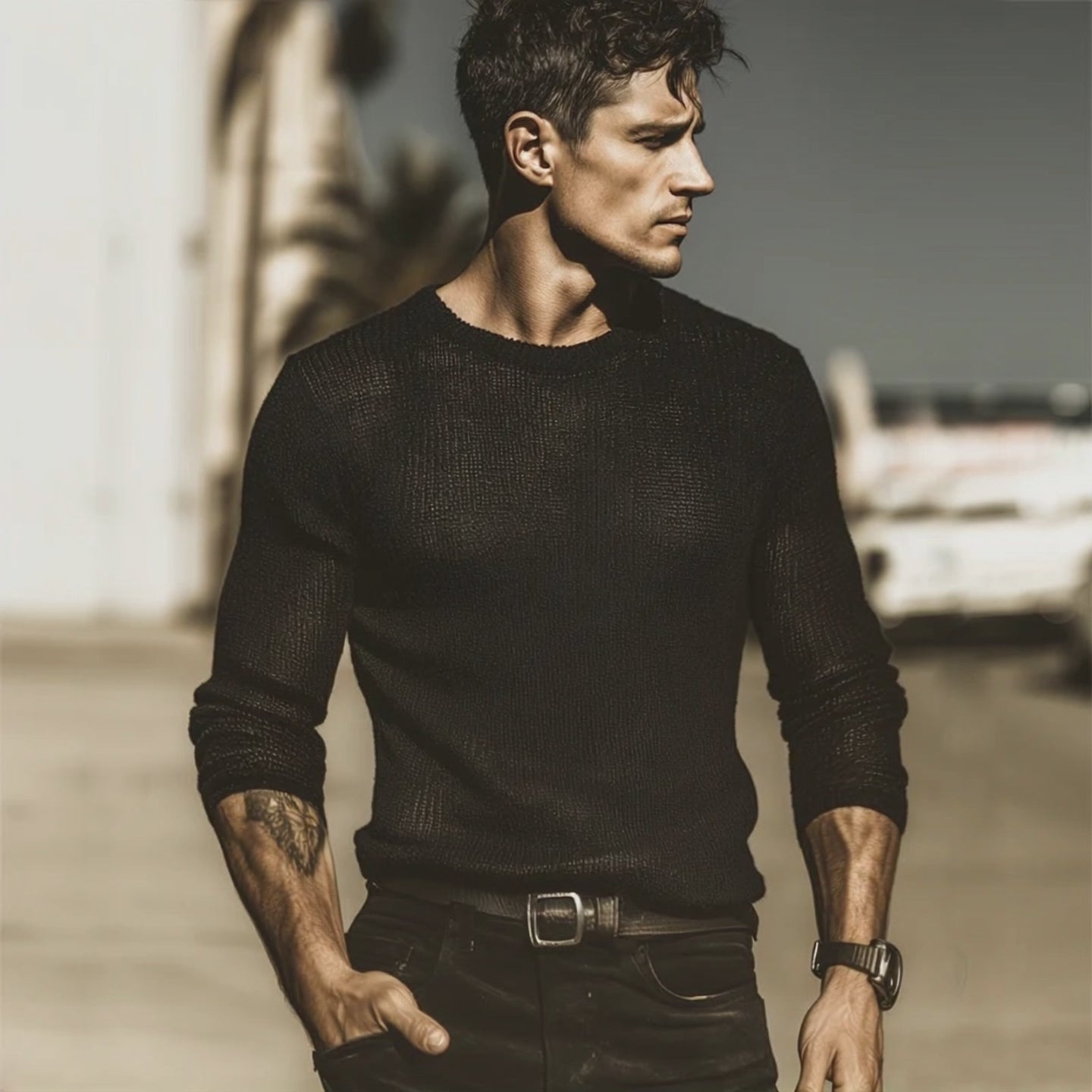 Men's Retro Casual Solid Color Knit Crew Neck Sweater MTZ1226A0TO