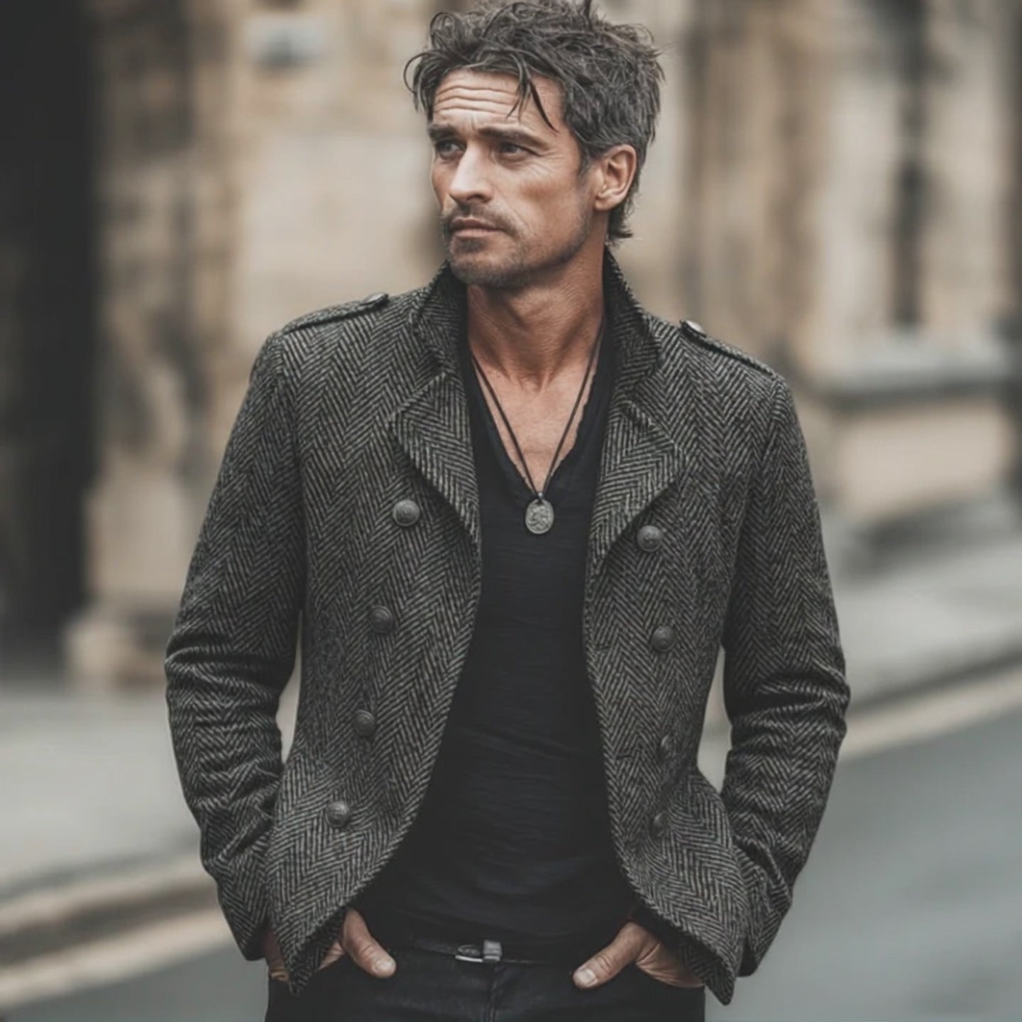 Men's Retro Stand Collar Herringbone Blend Zipper Jacket MTA0437L8X