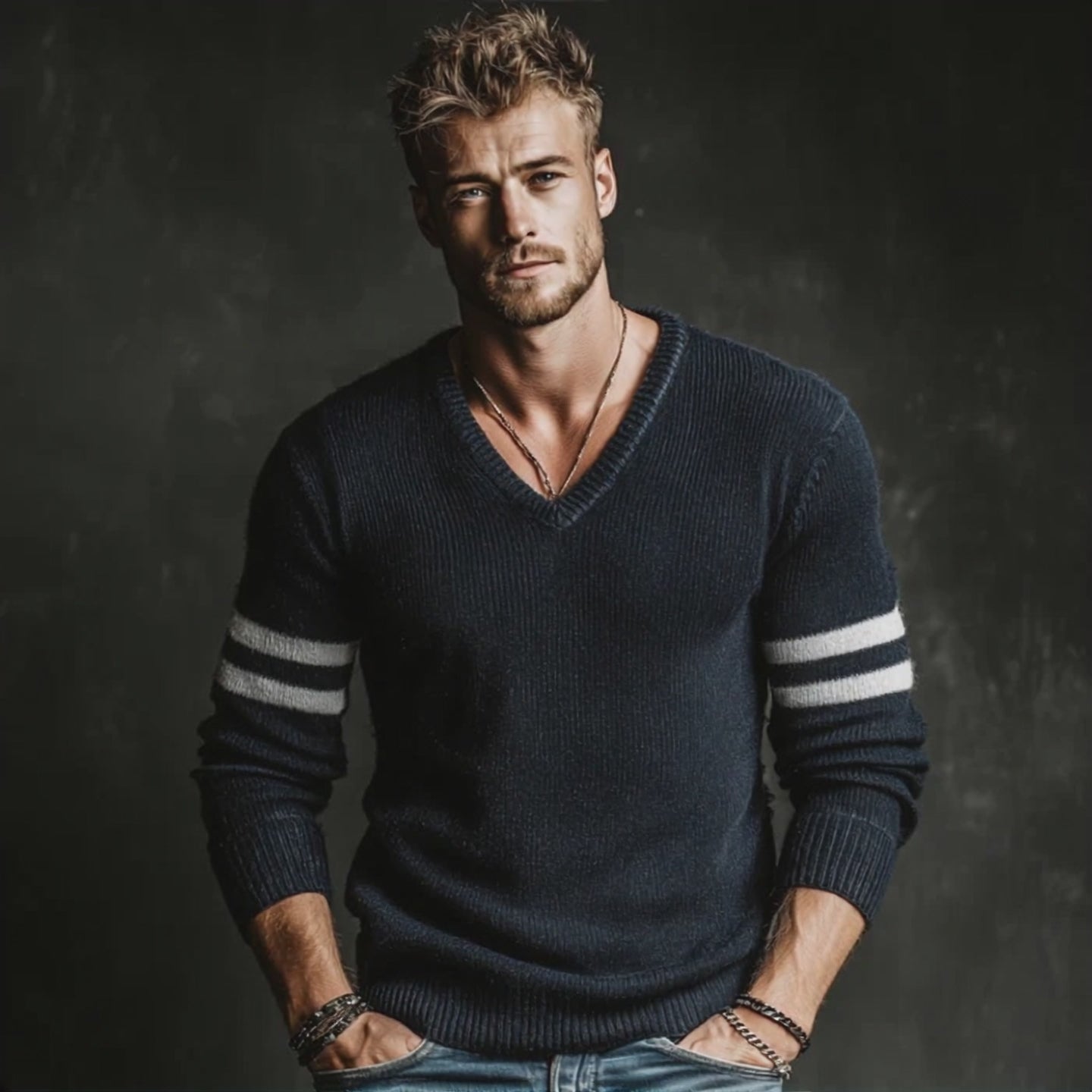 Men's Urban Tiger Stripe Crew Neck Knit Sweater MTA0419L1U