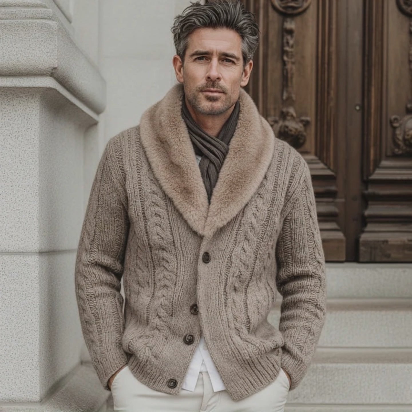 Men's Classic Cable Knit Detachable Mink Fur Collar Cardigan MTA2625K2U