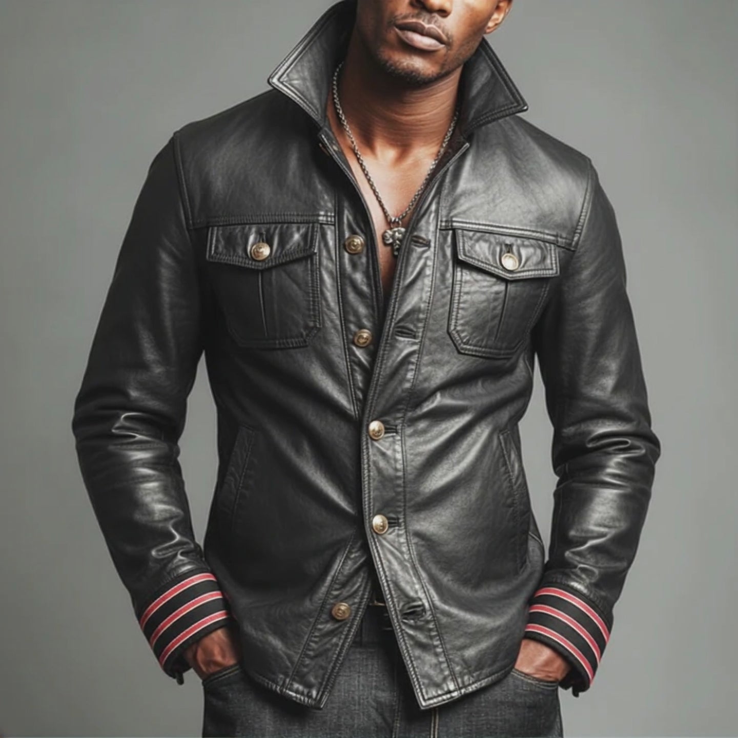 Men's Urban PU Leather Slim Fit Button Jacket MTA1206K2U