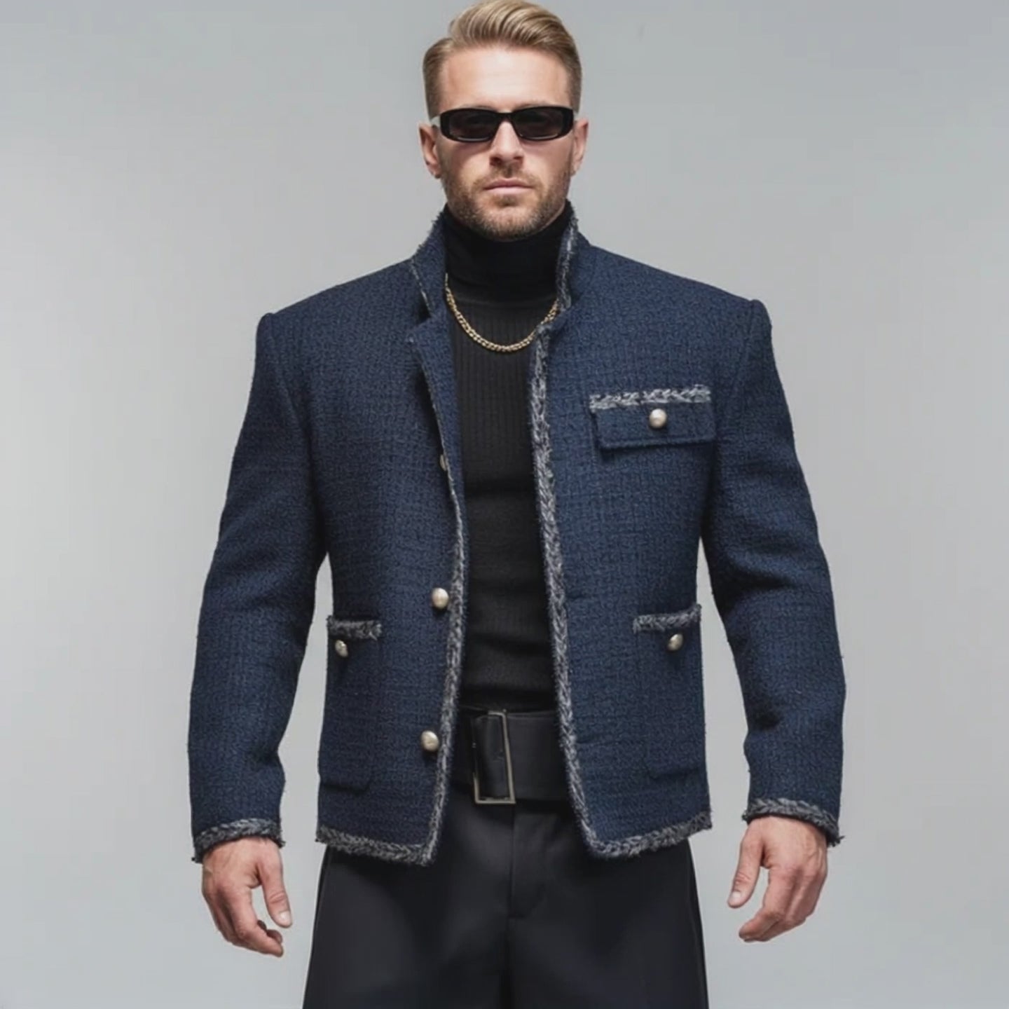 Men's Navy Blue Classic Chanel-Style Stand Collar Jacket MTA1067K3U