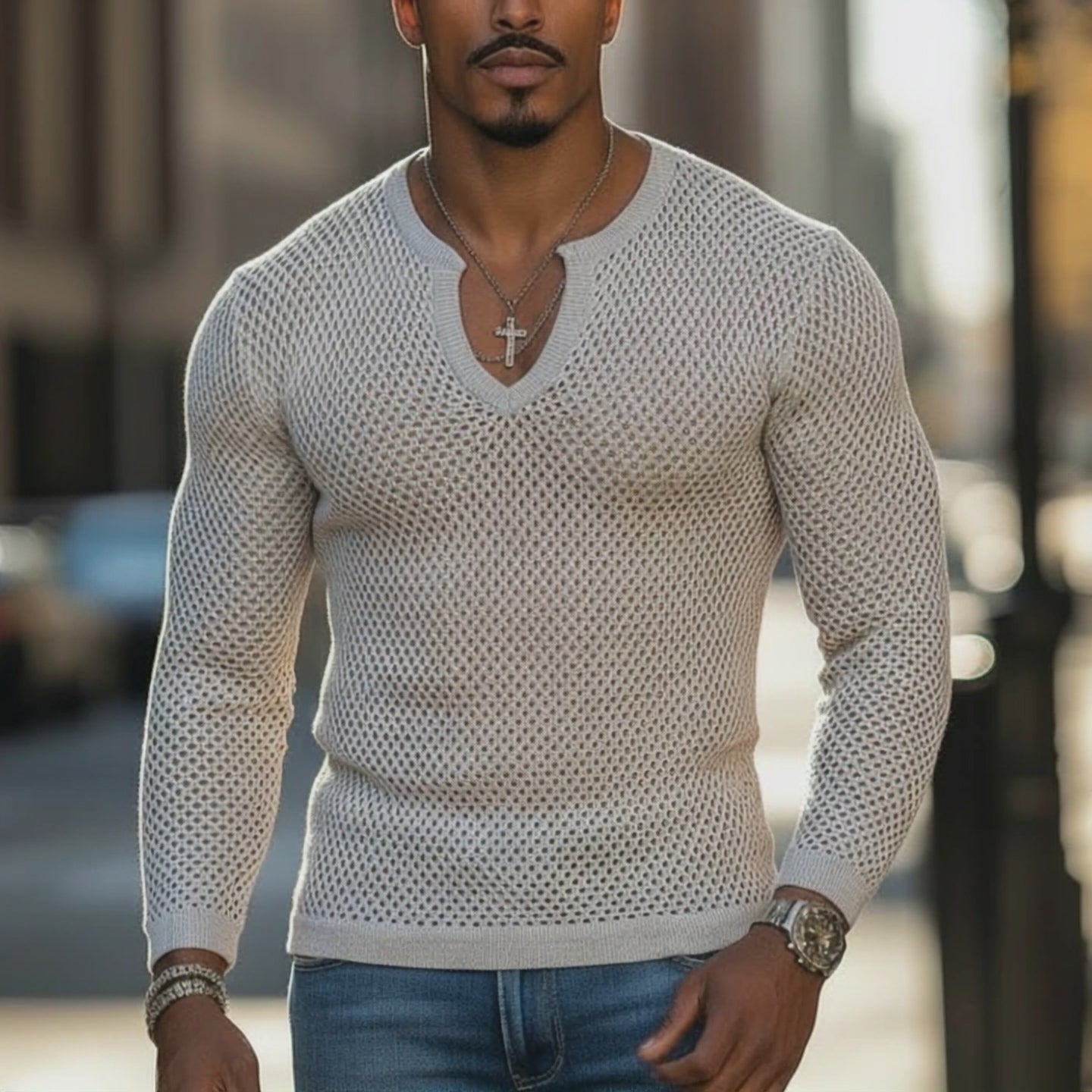 Men's Retro Casual Knitted Slightly Sheer Lapel Sweater MTZ0828A5TO