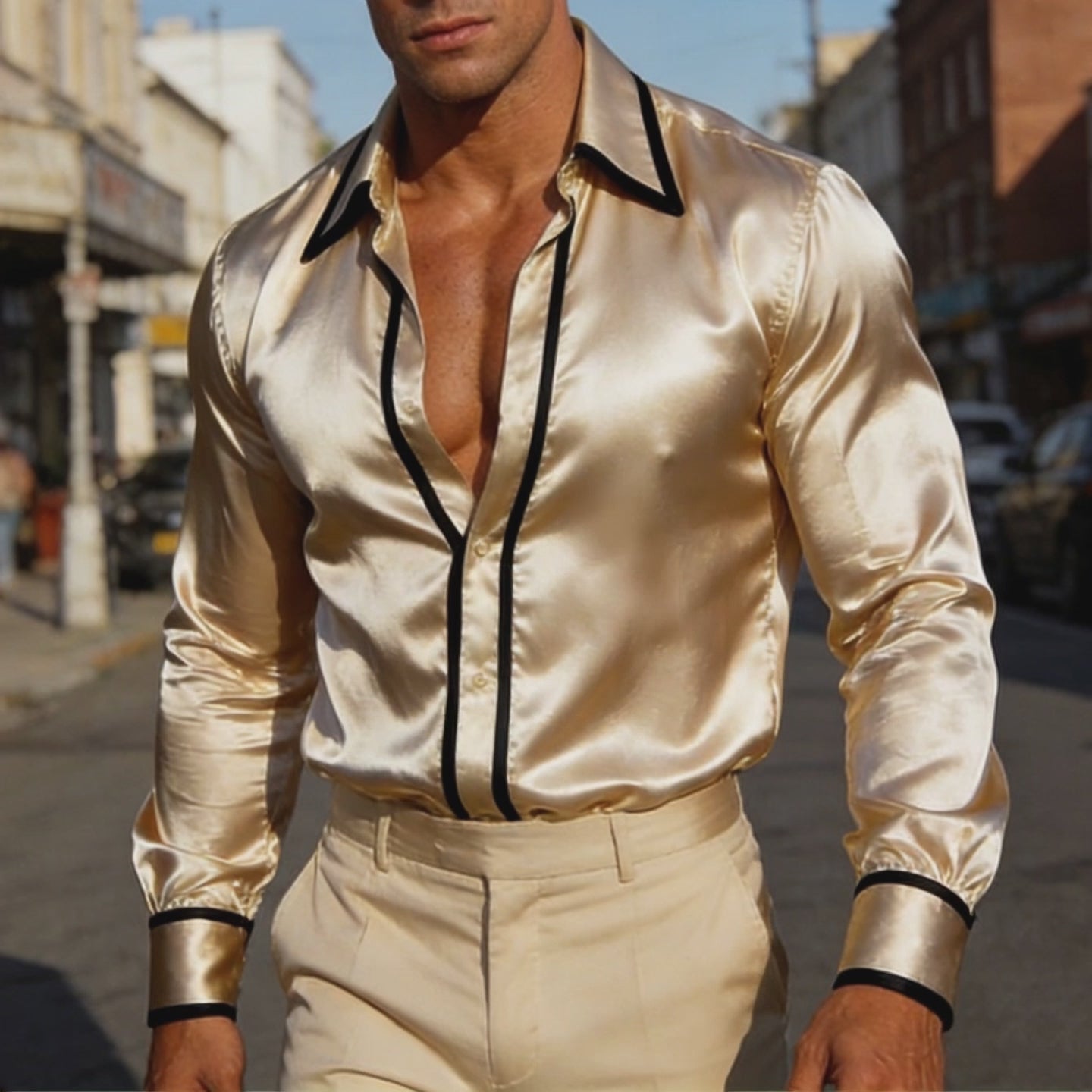 Men's Classic Casual Satin Pullover Long-sleeved Shirt MTZ0924A7K