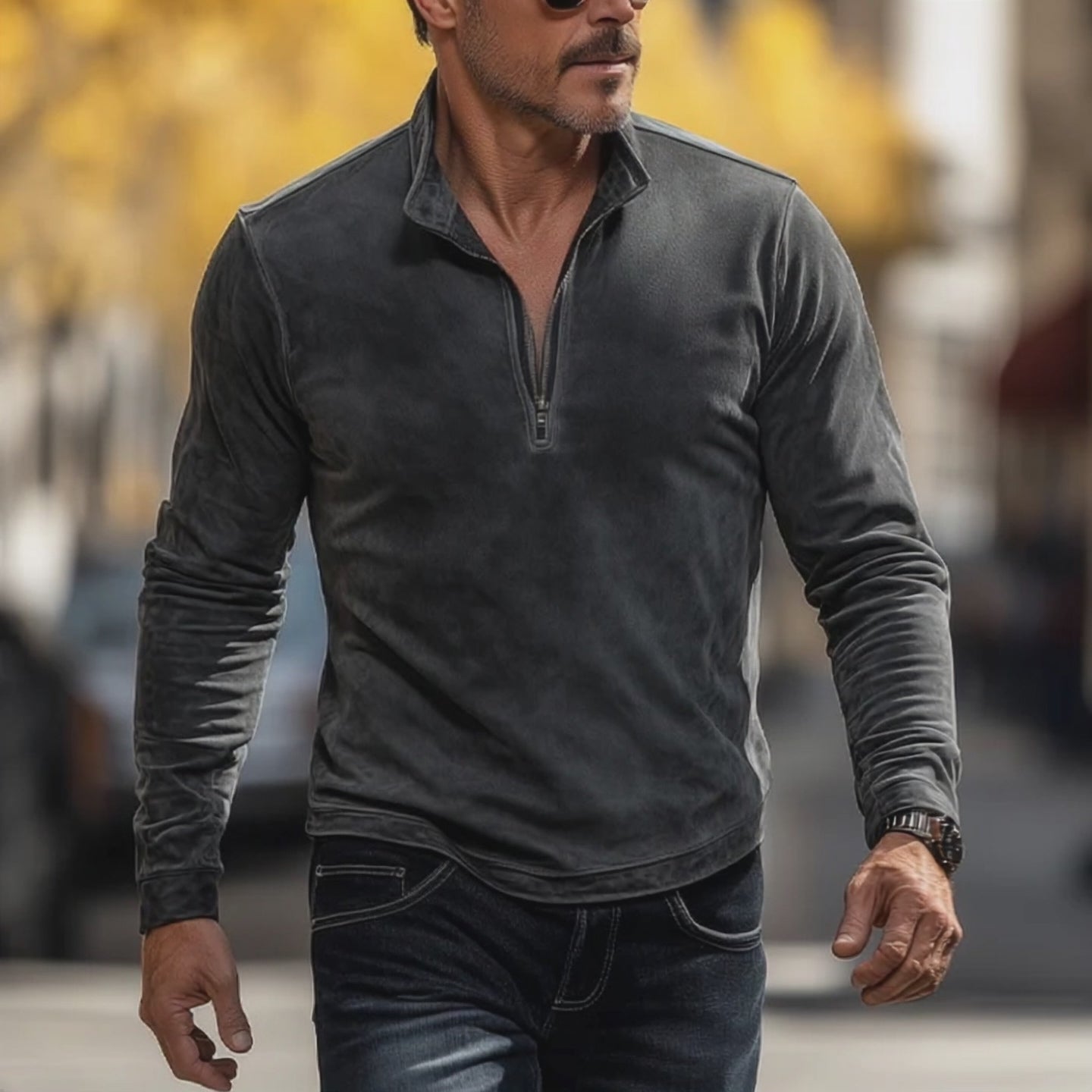 Men's Retro Minimalist Half-Zip Faux Suede T-Shirt MTA1180L7P