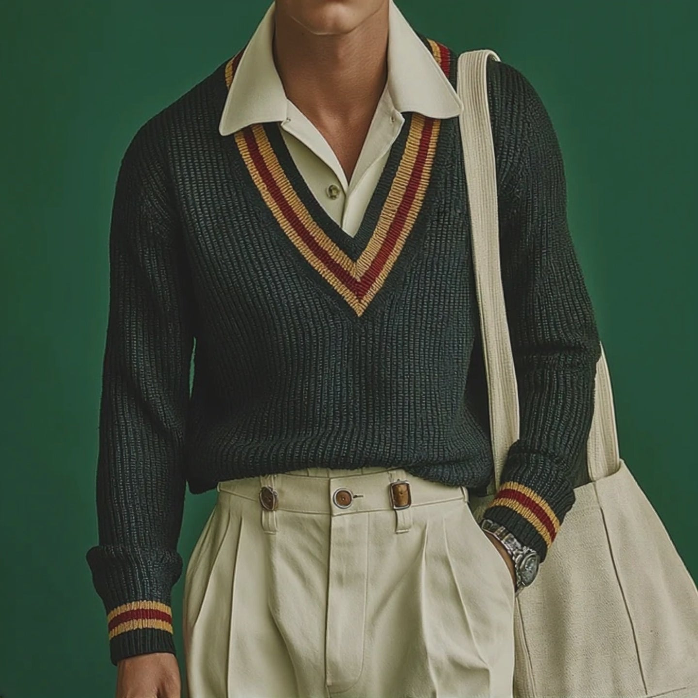 Men's Vintage Rainbow Stripe V-Neck Knit Sweater 10689080X