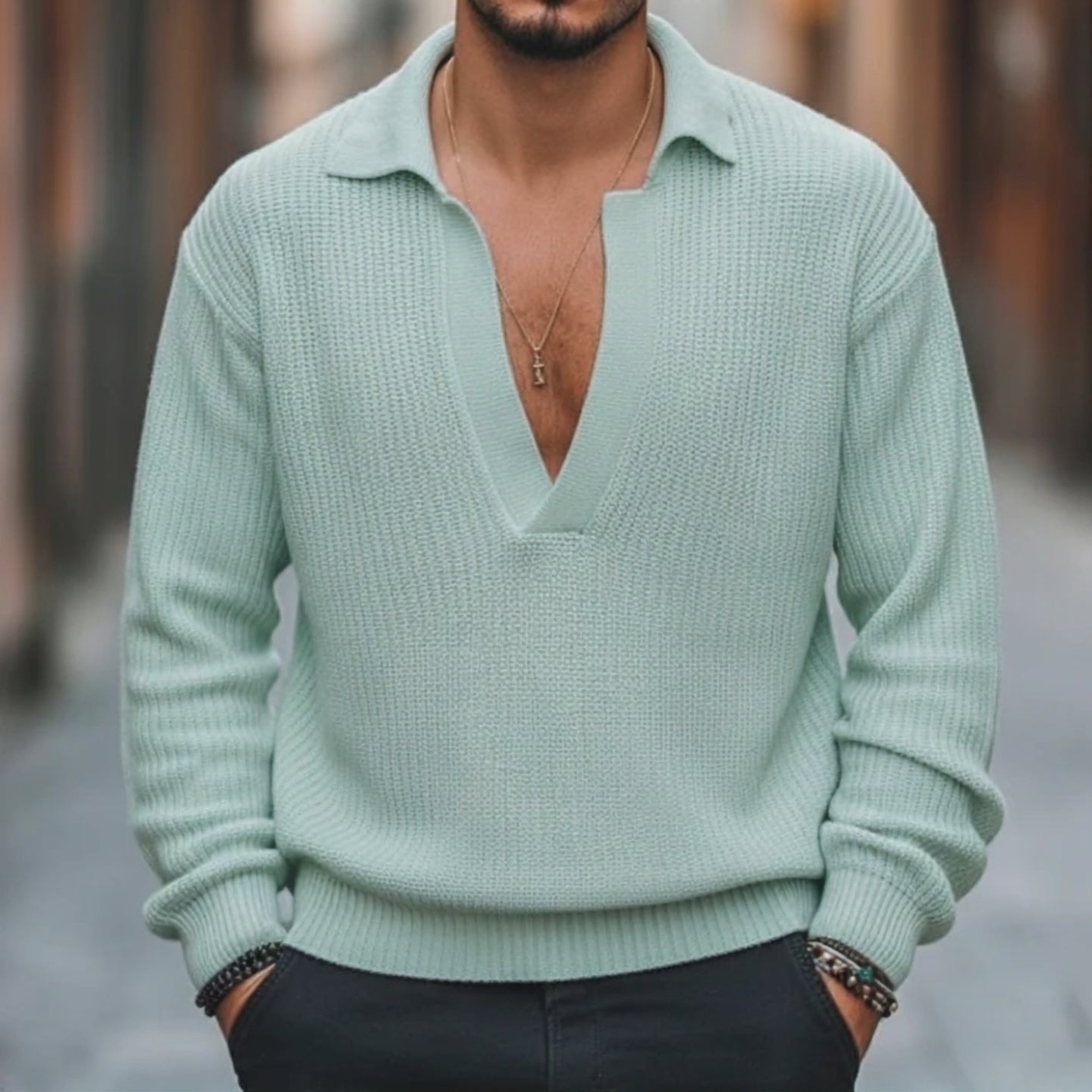 Men's Solid Color Buttons Collar Long Sleeve Sweater 21588765Z