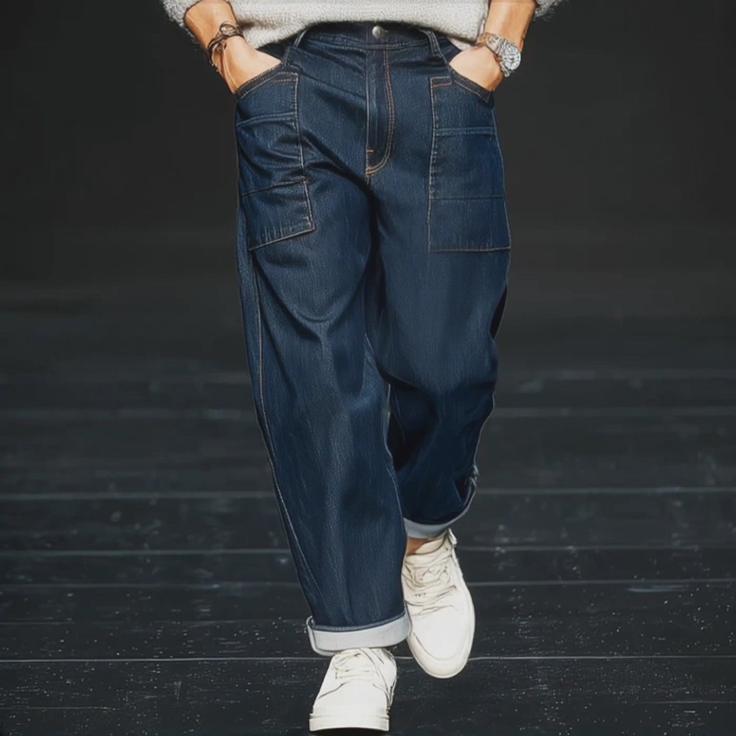 Men's Classic Simple Dark Blue Jeans MTA2495J8U