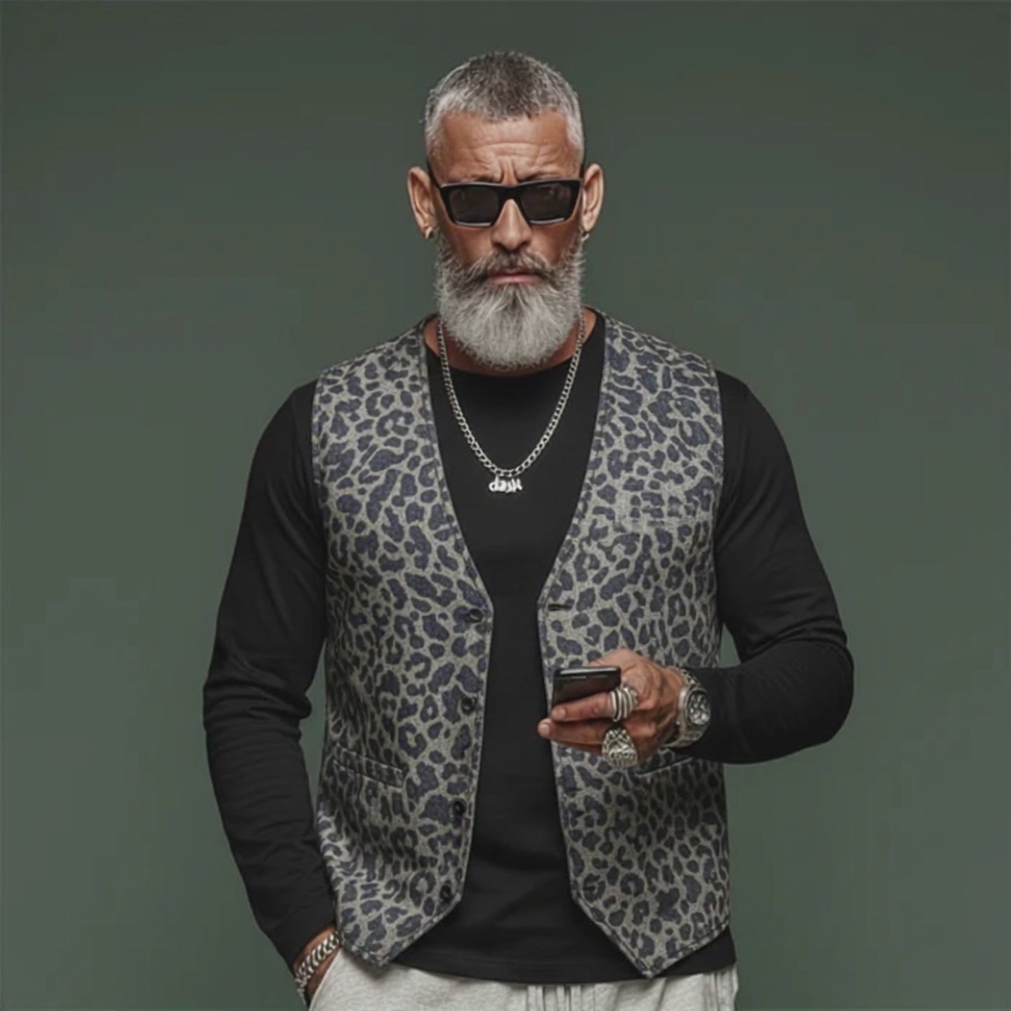 Men's Classic Casual Denim Jacquard Leopard Print Vest MTA1210L5K