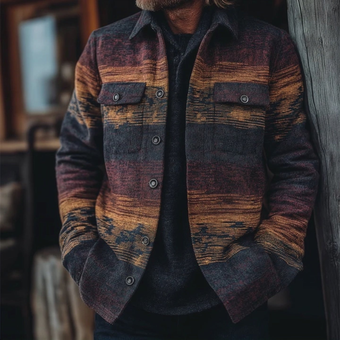 Men's Retro Casual Western Style Printed Shirt Jacket MTA2823H1TO