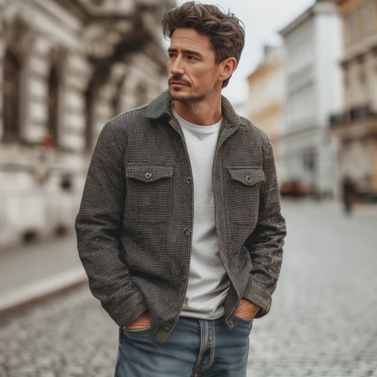 Men's Vintage Herringbone Striped Lapel Patchwork Single-breasted Slim-fit Jacket MTA0690H0M