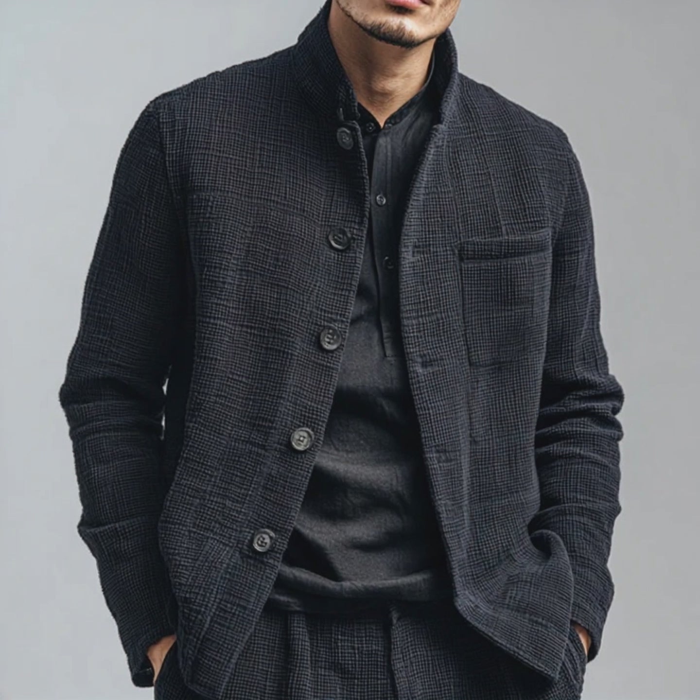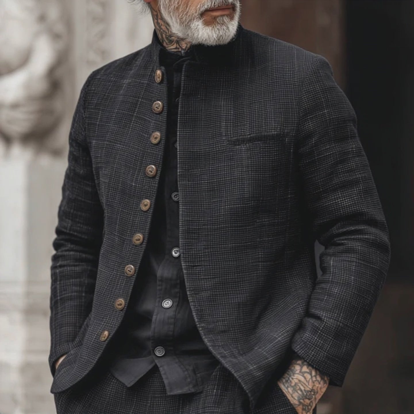 Men's Vintage Stand Collar Velvet Multi-Button Jacket MTA1901H1U
