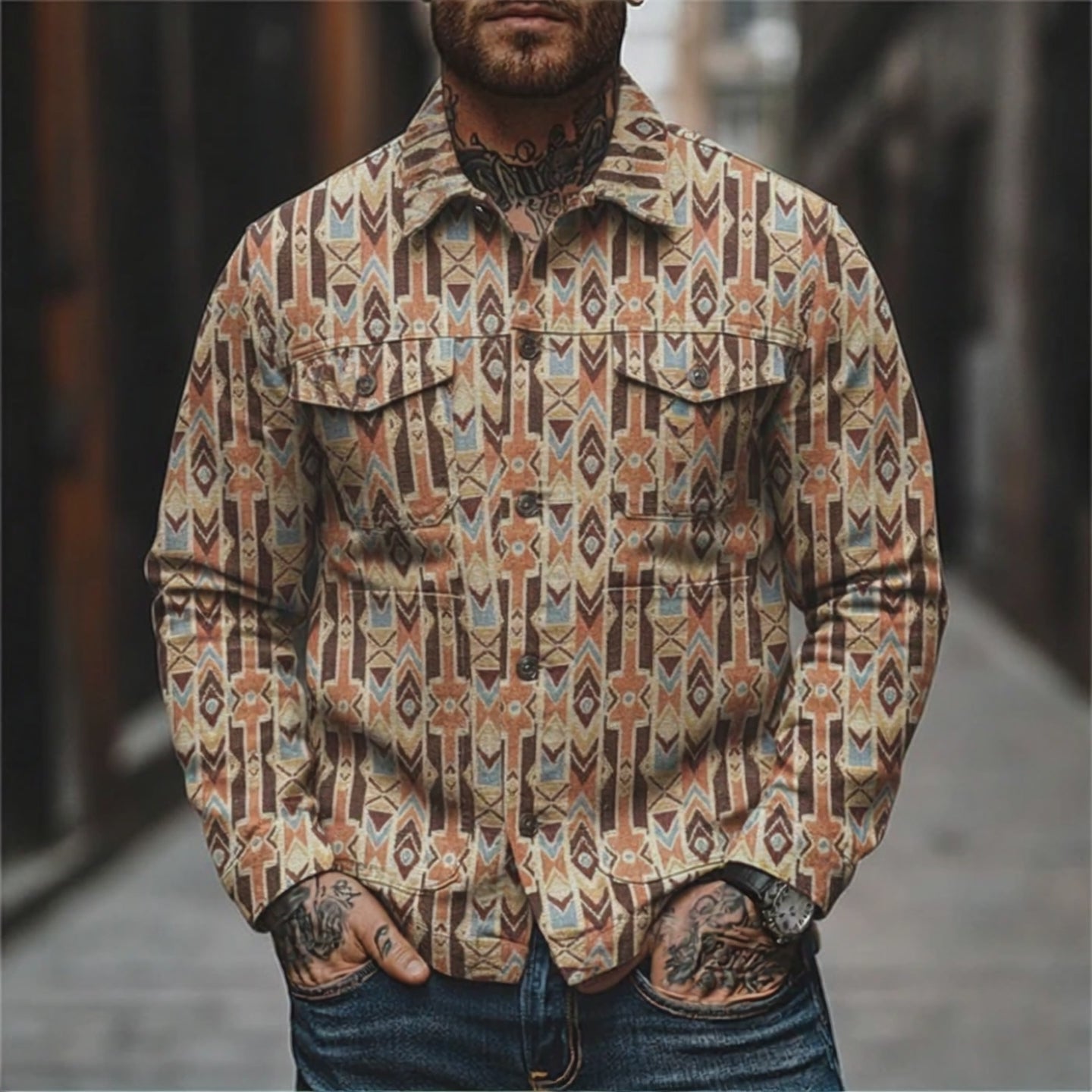 Men's Retro Plaid Print Lapel Blazer MTA2471K7X