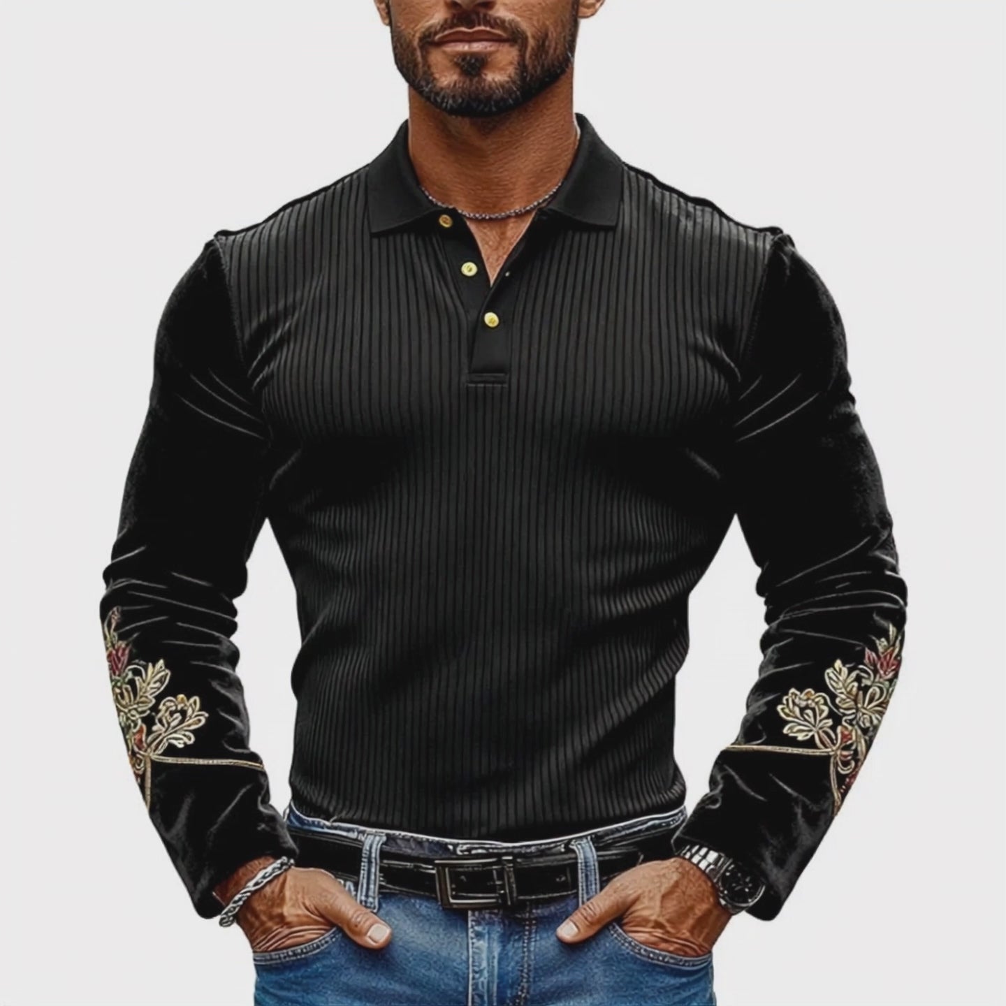 Men's Striped Casual Long-sleeved Polo Shirt MTA0126K5X