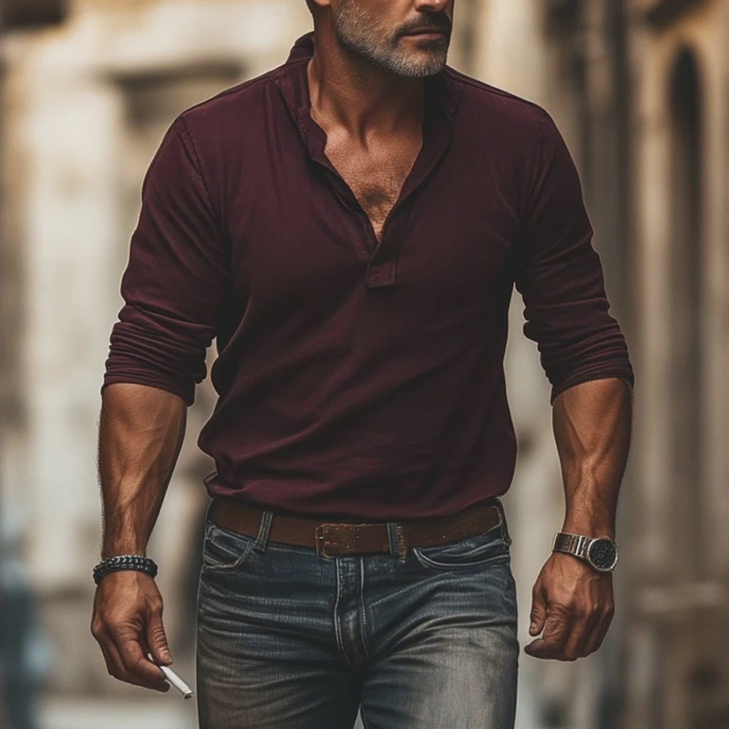 Einfarbiges Langarm-Polo-T-Shirt für Herren 75988387Y