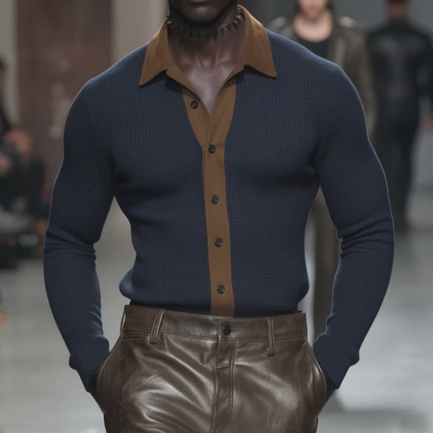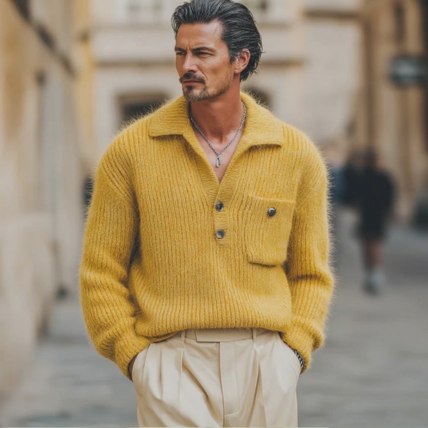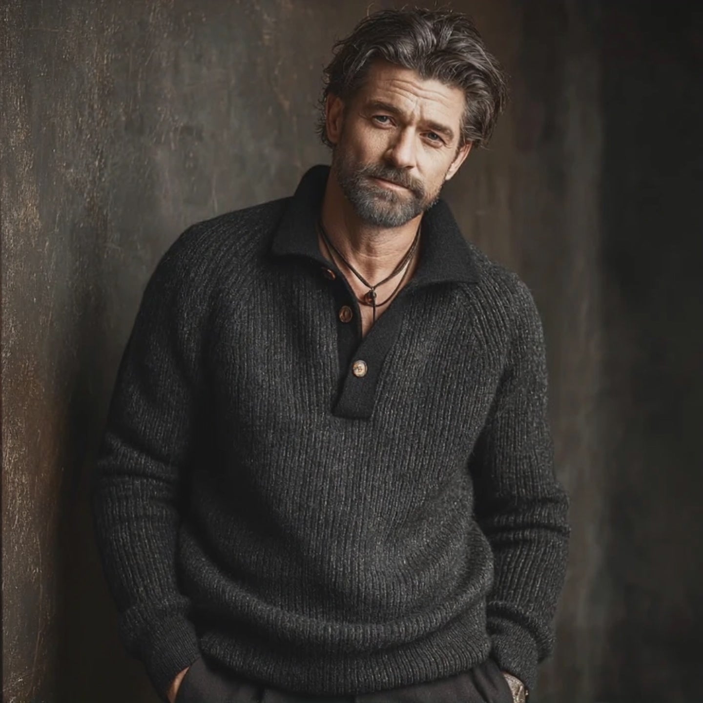 Men's Classic Three-button Henley Collar Stretch Slim Fit Sweater MTA0867K6U