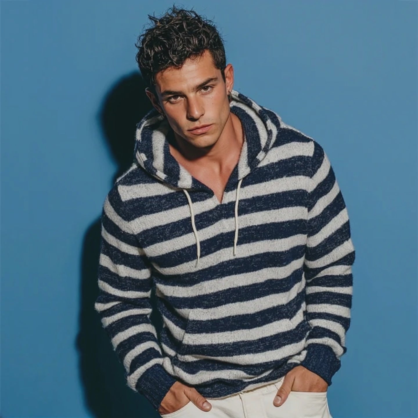 Men's Urban Casual Ocean Striped Knit Hoodie MTA0896L9U